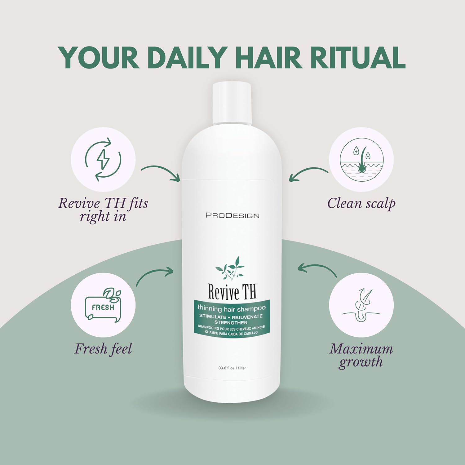 ProDesign Revive TH Thinning Hair Shampoo, Hair Growth Stimulating Formula, 33 oz (Revive Shampoo 33oz)