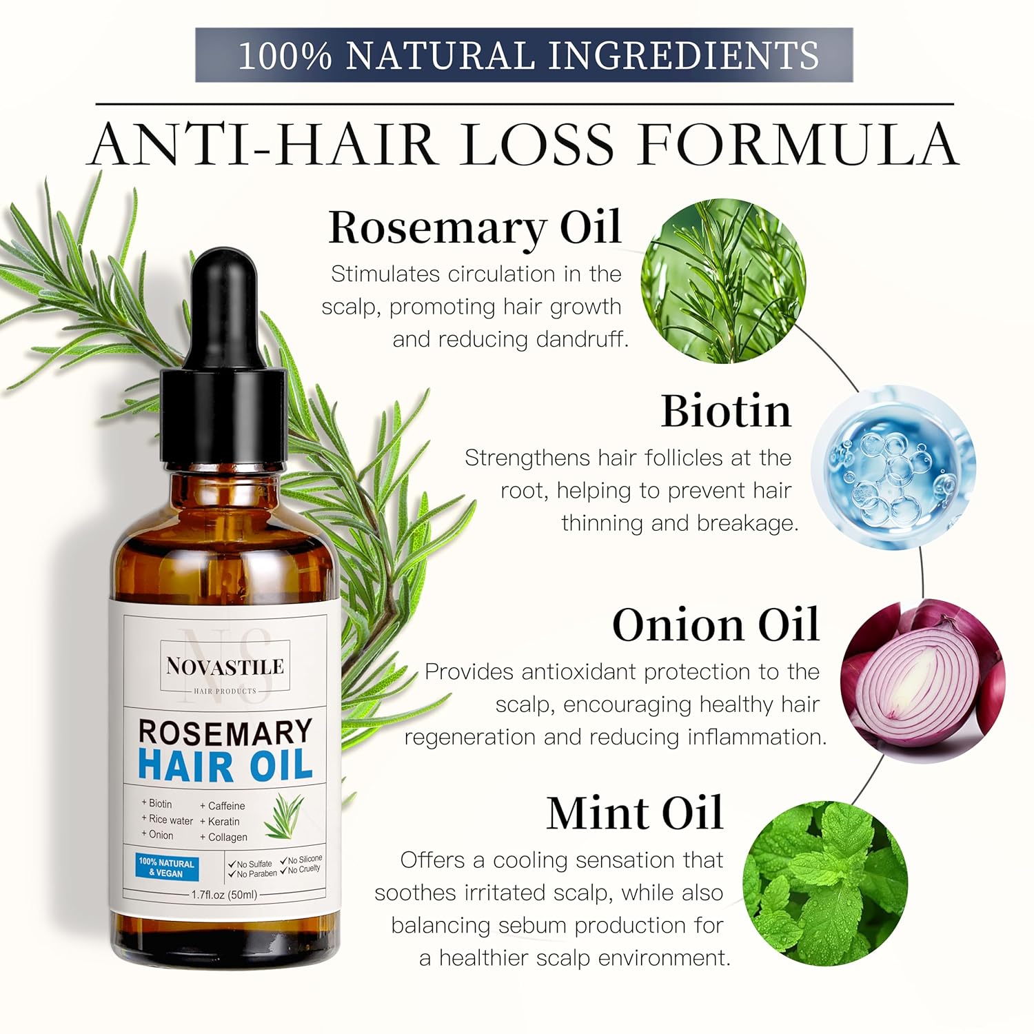 Rosemary Hair Oil – Dry Scalp & Split End Treatment with Biotin & Essential Oils for Strengthening, Nourishing, Moisturizing & Supporting Longer, Healthier Hair