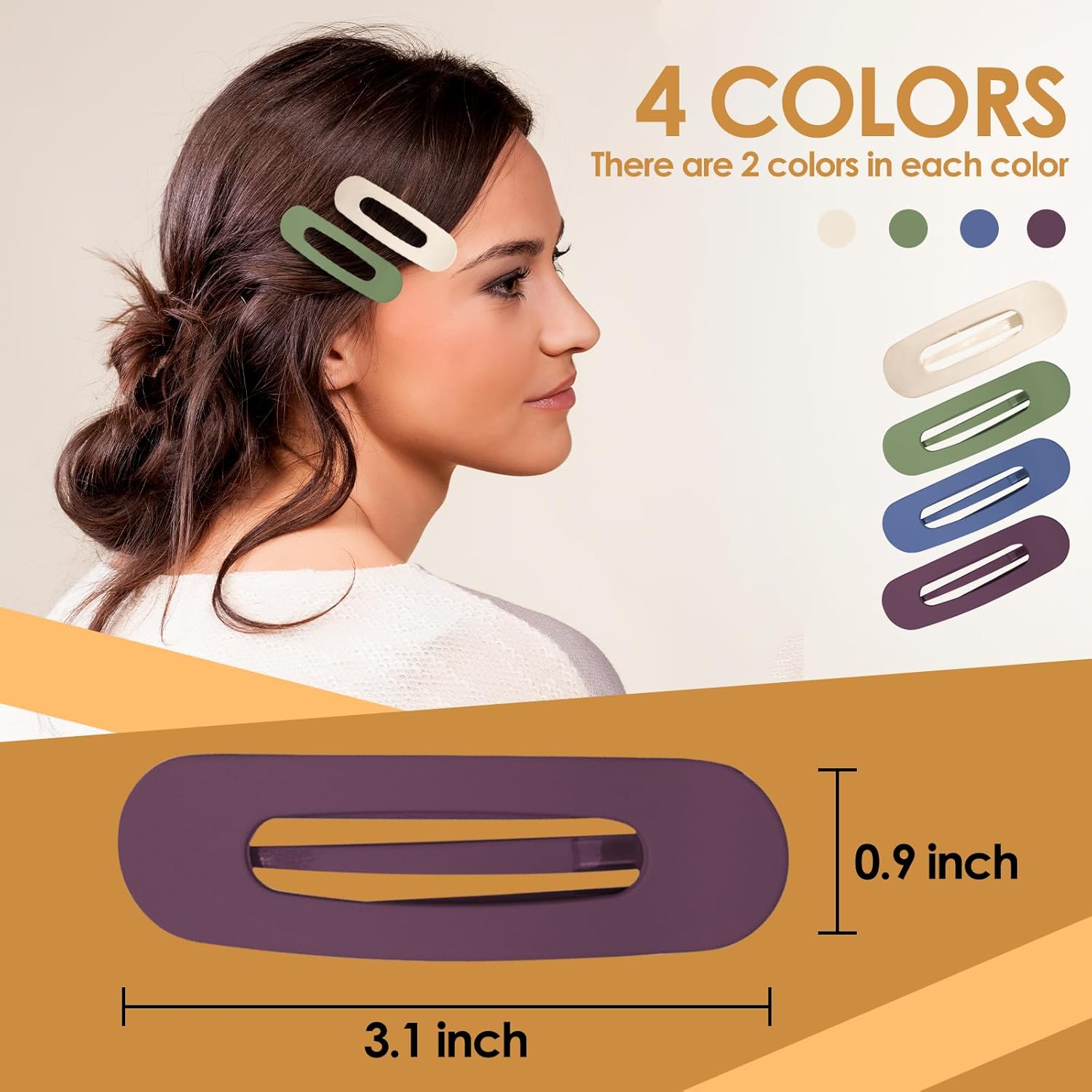 - Matte hairpins: The hairpins come in 4 colors: 2 each of Army green, dark purple, blue and light khaki, you can choose different colors to match