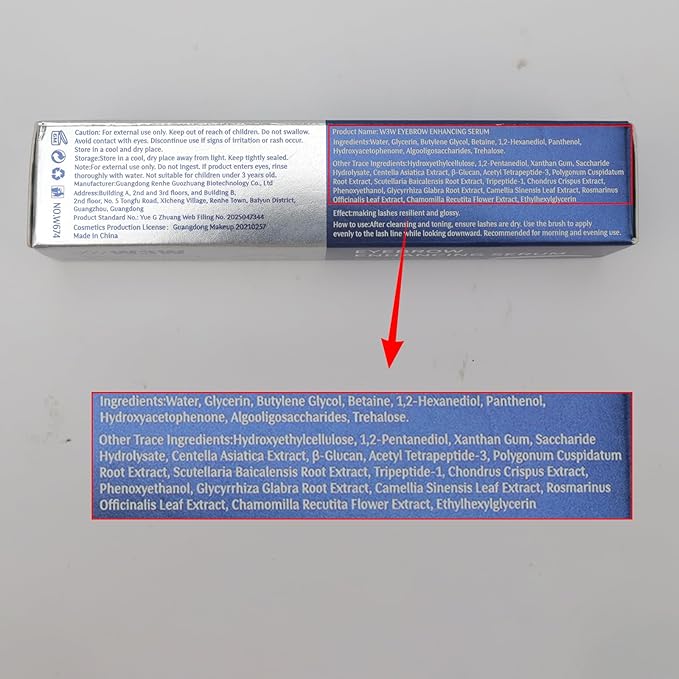 - Ingredients:Water, Glycerin, Butylene Glycol, Betaine, 1,2-Hexanediol, Panthenol,Hydroxyacetophenone, Algooligosaccharides, Trehalose.Other Trace ingredients:Hydroxyethylcellulose, 1,2-Pentanediol, Xanthan Gum, Saccharide Hydrolysate, Centella Asiatica Extract, B-Glucan, Acetyl Tetrapeptide-3, Polygonum Cuspidatum Root Extract, Scutellaria Baicalensis Root Extract, Tripeptide-1, chondrus Crispus Extract,Phenoxyethanol, Glycyrrhiza Glabra Root Extract, Camellia Sinensis Leaf Extract, Rosmarinus Offcinalis Leaf Extract, Chamomilla Recutita Flower Extract, Ethylhexylglycerin