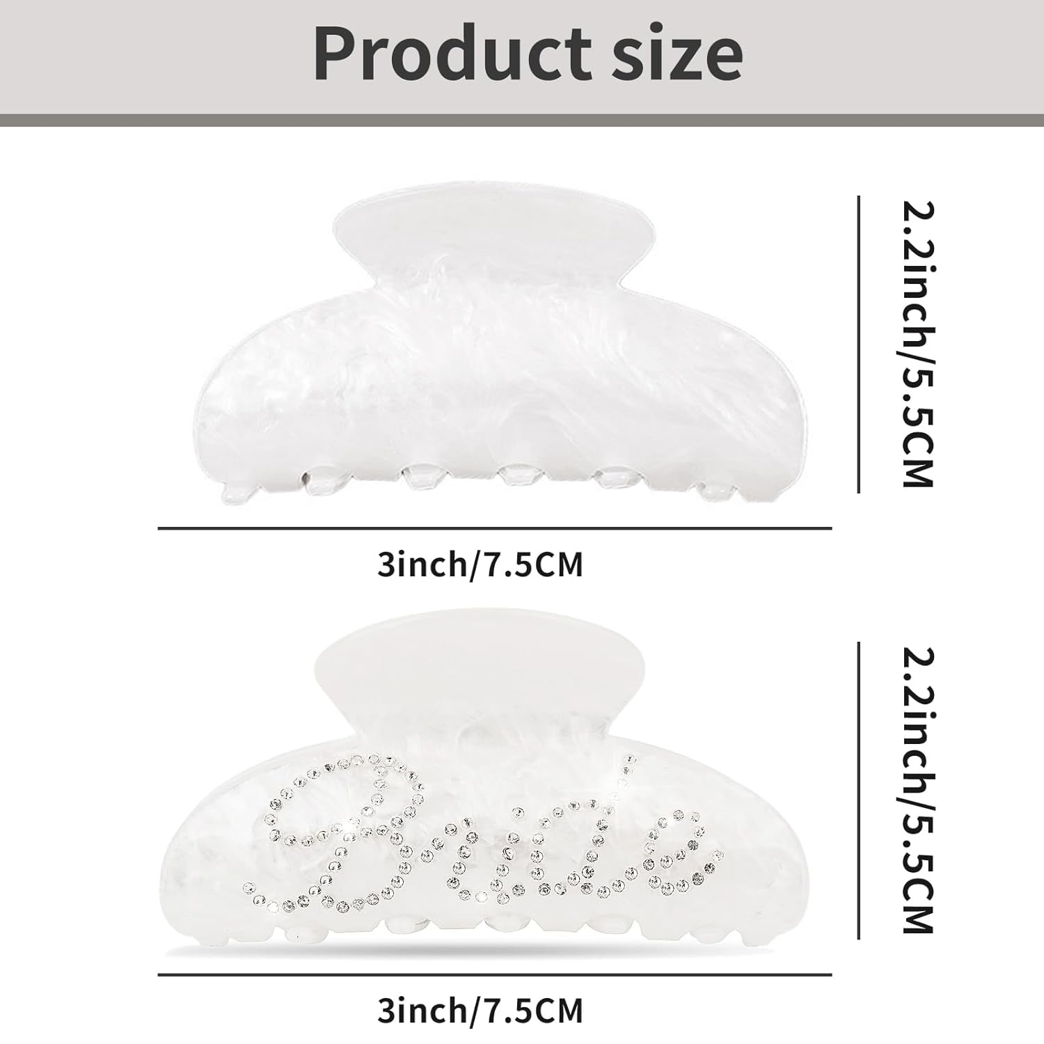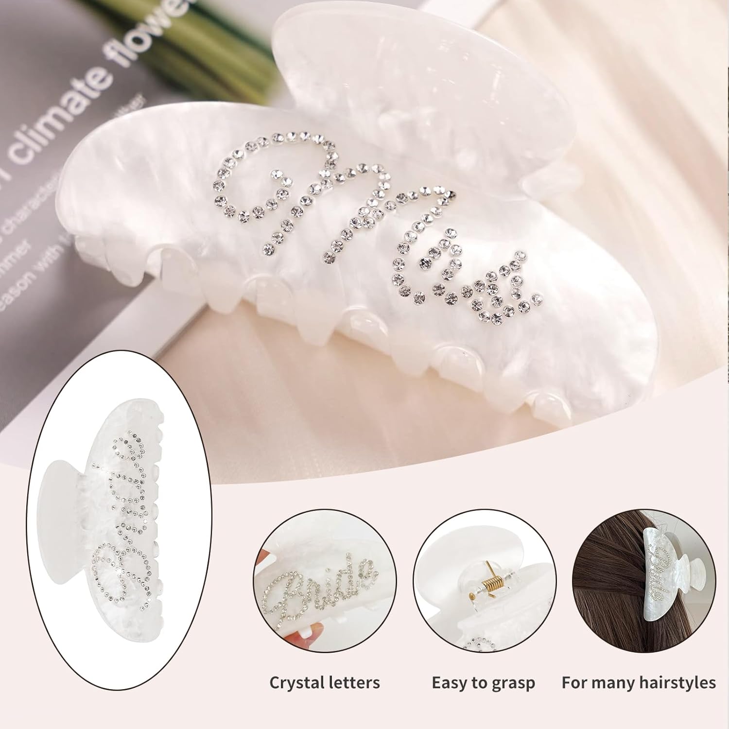 2Pcs Bride Claw Hair Clip, Bride White Acrylic Hair Clips with Rhinestone Logo, Bachelorette Party Wedding Birthday Banana Barrettes Hair Decorations for Girl, Trendy Bridal Claws