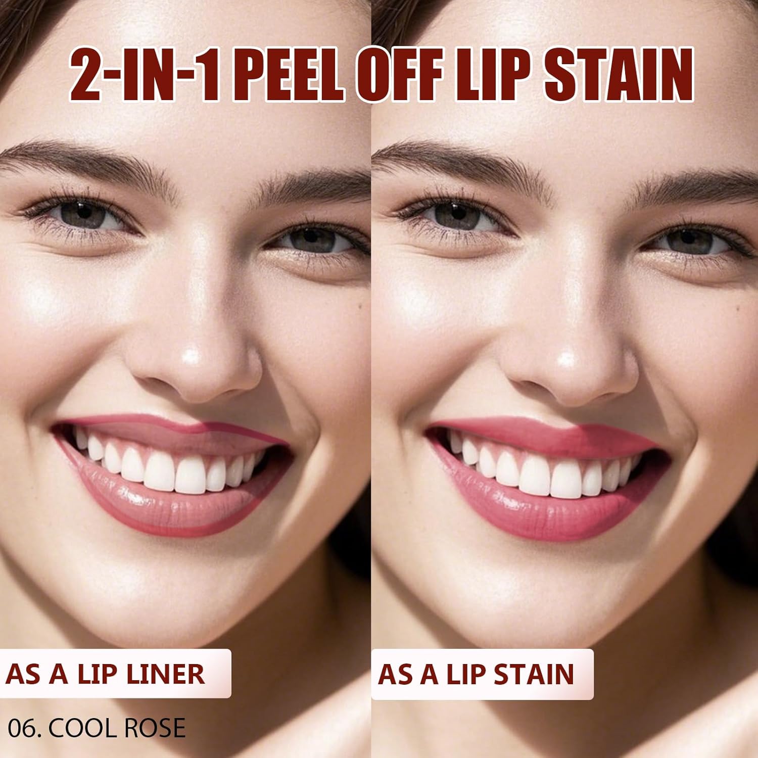 Lip Liner Stain Peel Off with Tweezer, Long Lasting Matte Lip Tattoo, Highly Pigmented Color Lip Makeup, Waterproof, Transfer-proof Lipstain for Women, for All Skin Types Cool Rose