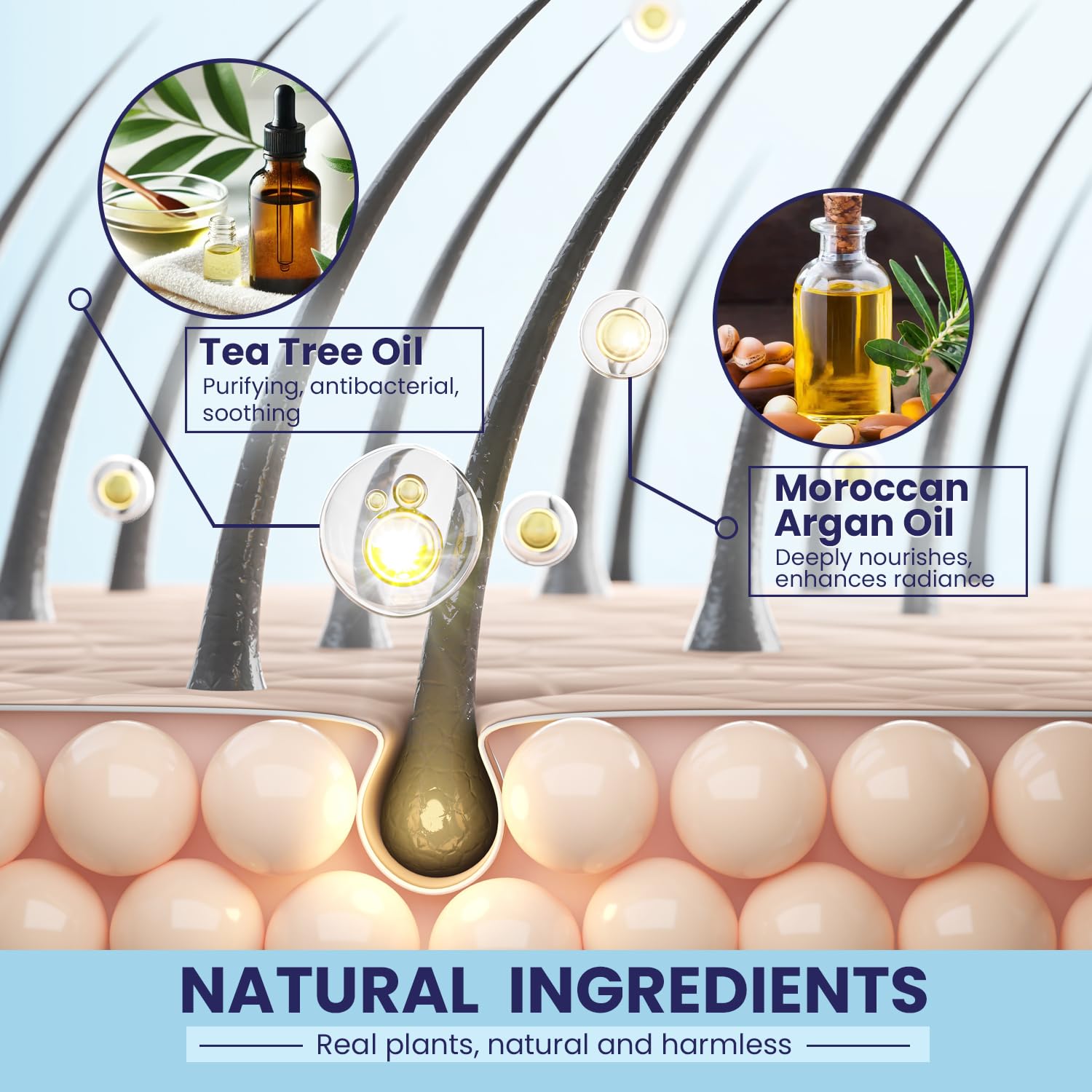 - Powerful Tea Tree Oil Blend: Tea tree oil is known for its calming and clarifying properties. Helps cleanse the scalp, reduce buildup, and support natural balance for clearer, healthier skin.