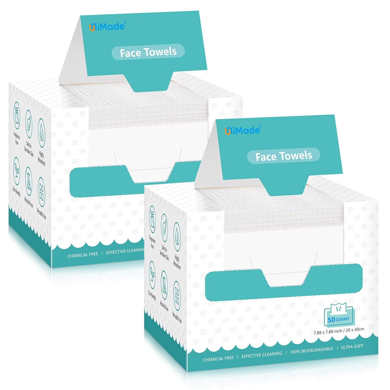 Face Towels, 100 Count Disposable Face Towelette for Washing Face, Skincare, Ultra Soft Facial Towel for Sensitive Skin, Lint-free Makeup Remover Dry Wipes - 2 Box