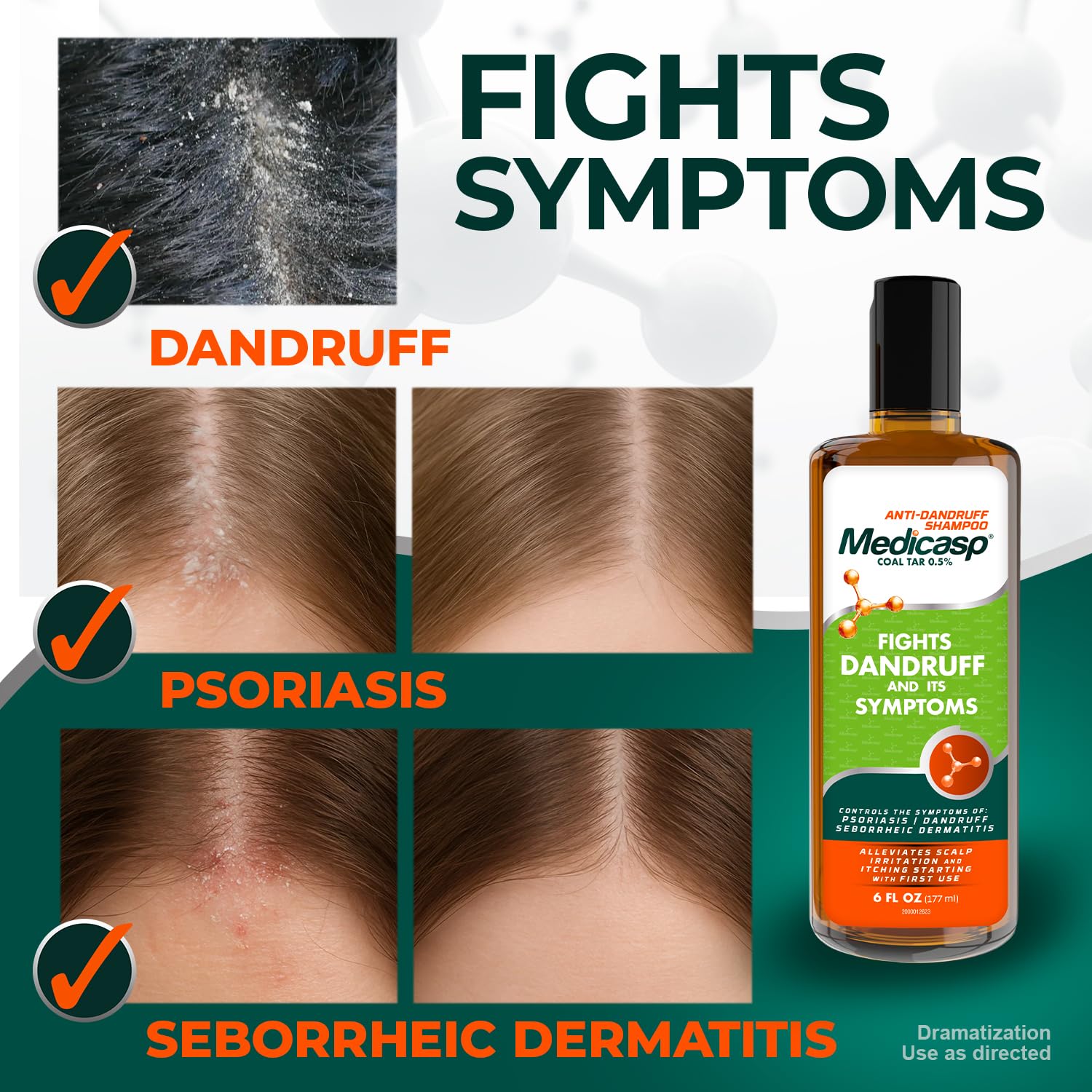 - [TARGETS THE ROOT CAUSE]: Medicasp coal tar shampoo treats dandruff at its source by targeting the fungus, unlike regular shampoos that only cover up symptoms