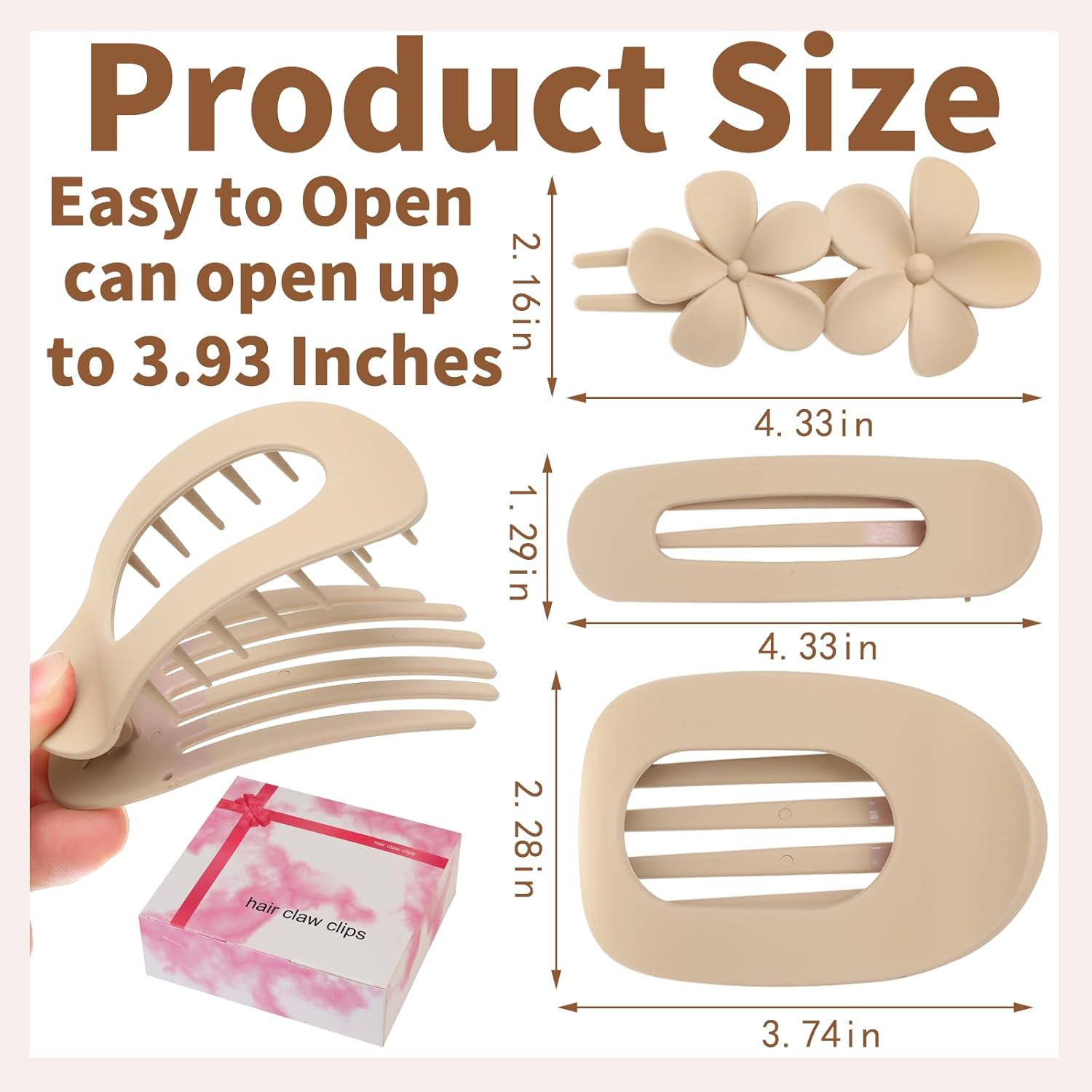 - PRETTY & FUNCTIONAL: These big claw clips for women can be used to create a variety of looks, from effortless up-dos to half-up styles. It's comfortable to wear while driving, or makeup relaxing on a beach chair, or leaning on the sofa