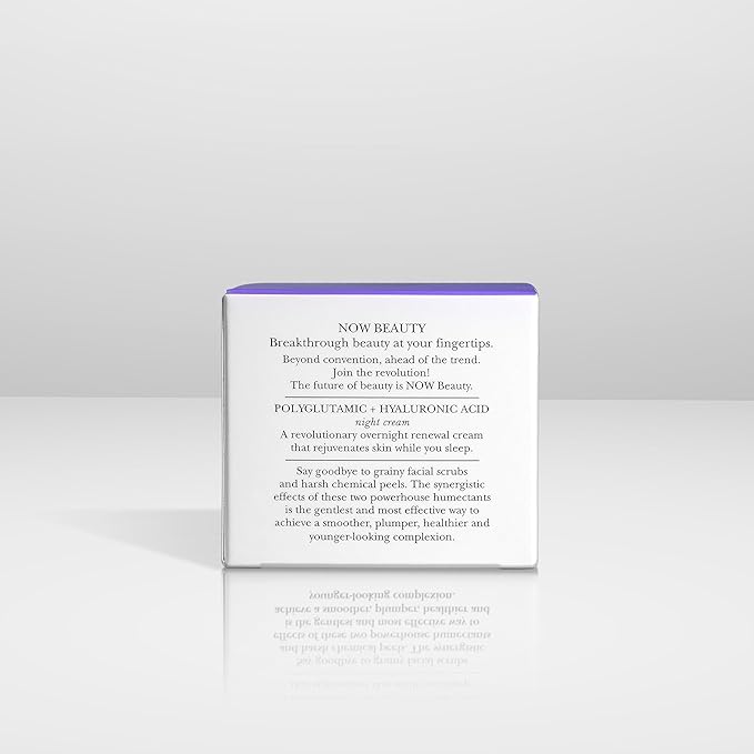 Polyglutamic Plus Hyaluronic Acid Night Cream - Deeply Hydrating Moisturizer - Overnight Anti-Aging Cream for Face - Vegan – Sulfate & Paraben Free - For Men & Women - Travel Size - 1.7 oz