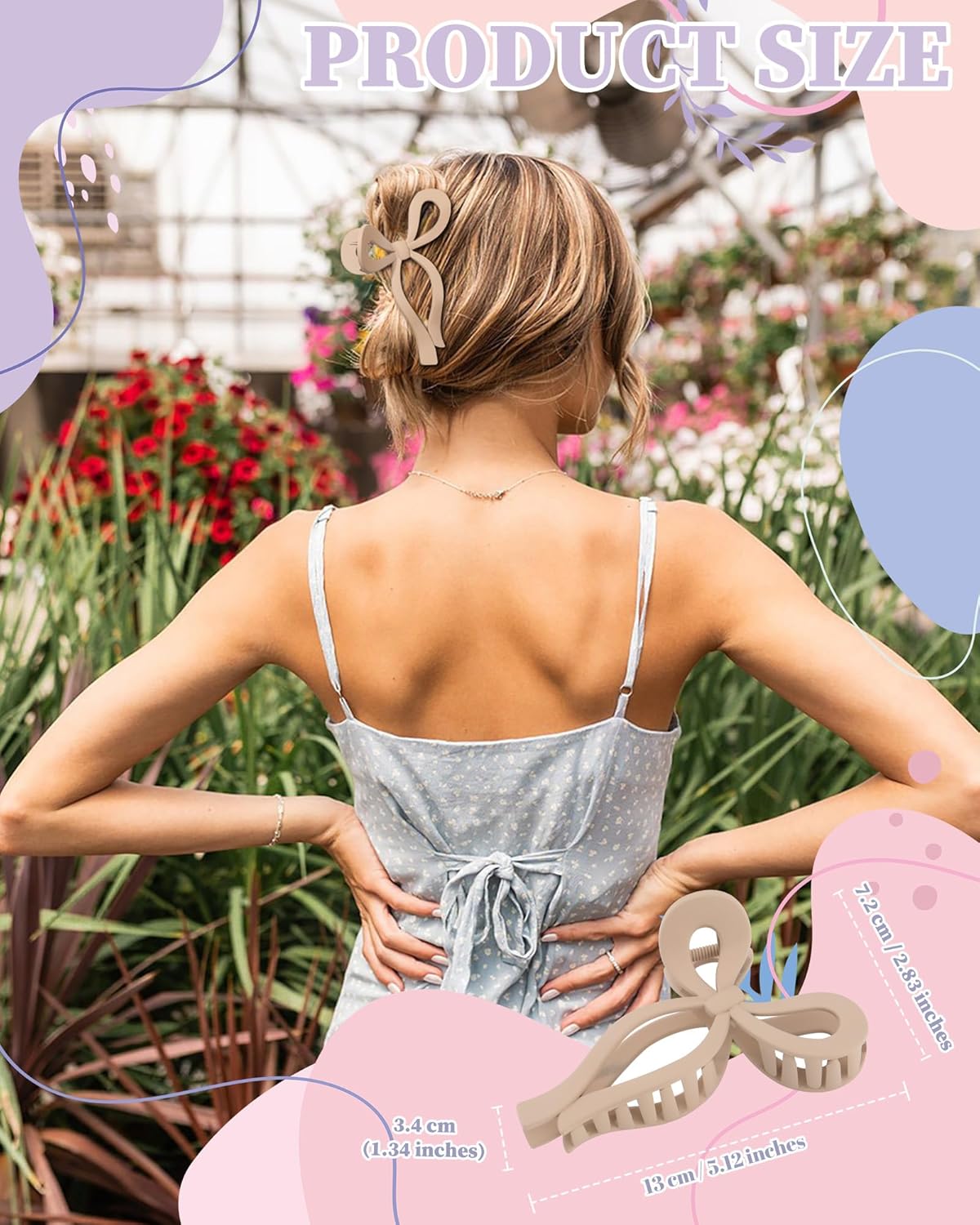 4 PCS Bow Hair Clips Bow Claw Clip for Women Nonslip Large Hair Claw Clips for Thin and Thick Hair Strong Hold Hair Bows (Black+Dark brown+Khaki+Light brown)