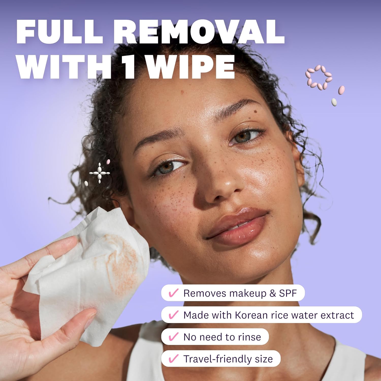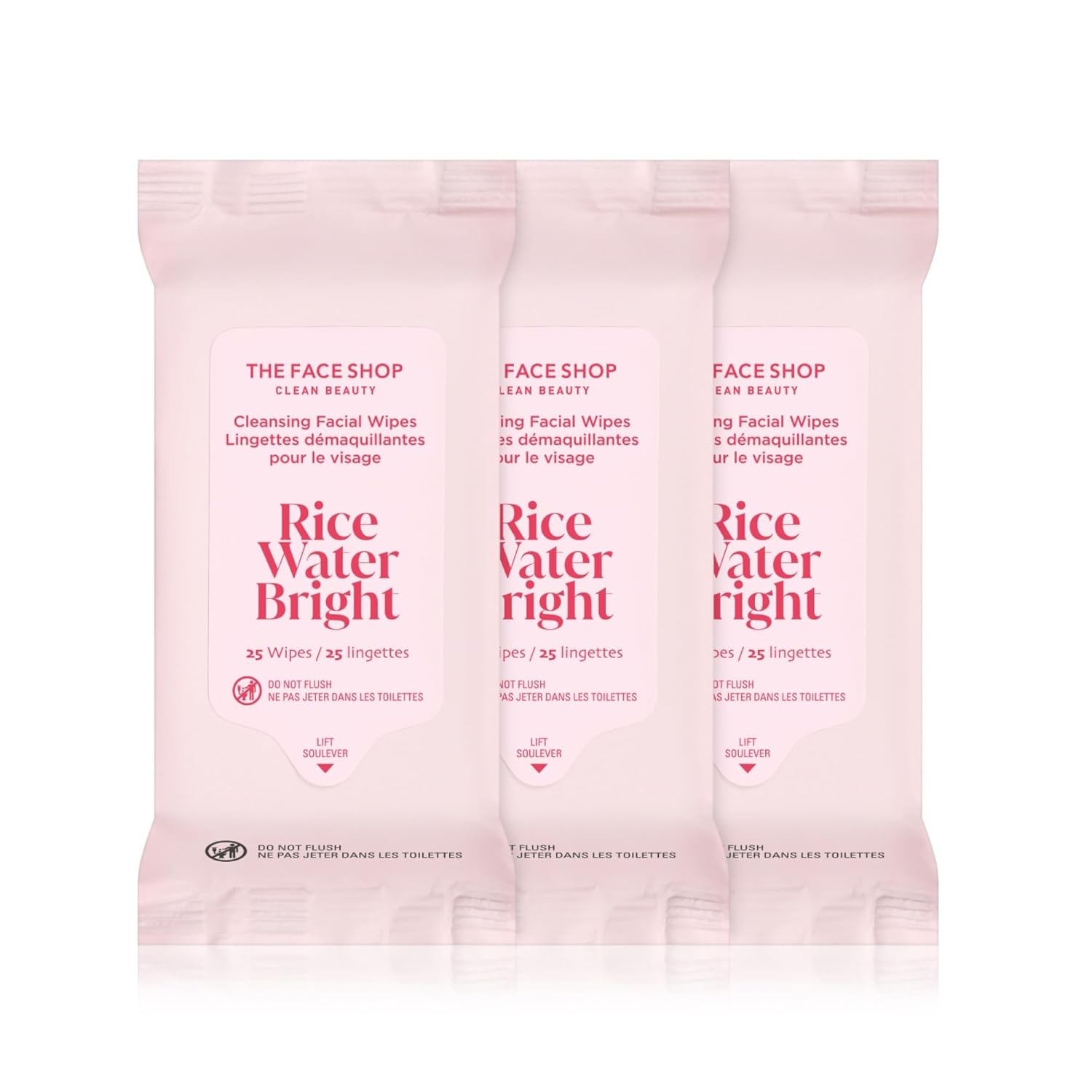 THE FACE SHOP X GLAMZILLA Rice Water Bright Cleansing Wipes On-the-Go Bundle for Face, Moisturizing, Infused with Rice Extract, Cleansing Facial Wipes, 25 Count (Pack of 3)