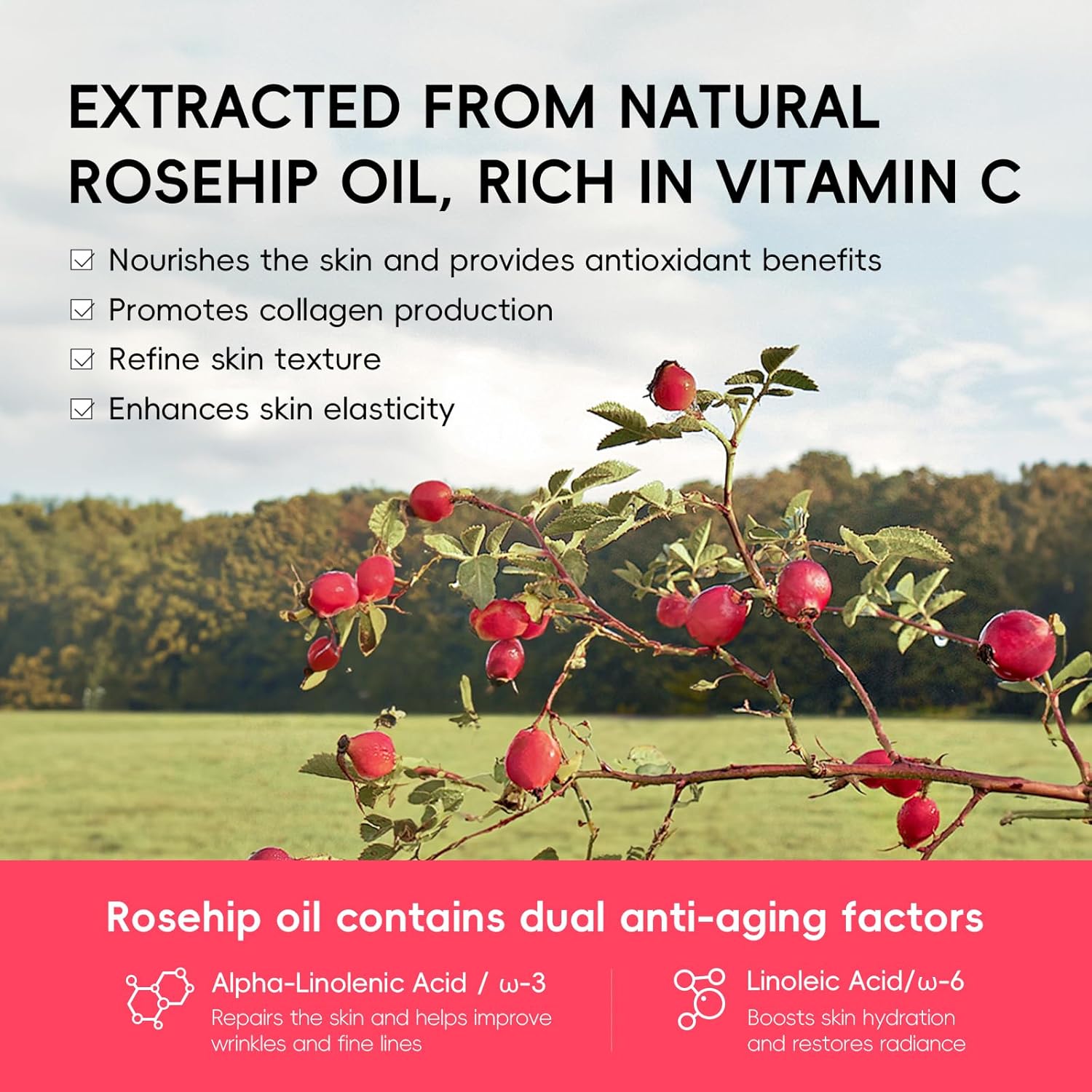 - Natural Herbal Scent with Pure Ingredients: Boasts a distinct herbal aroma from natural rosehip extract. Clear ingredients bringing a fresh, plant-powered feel to daily skincare