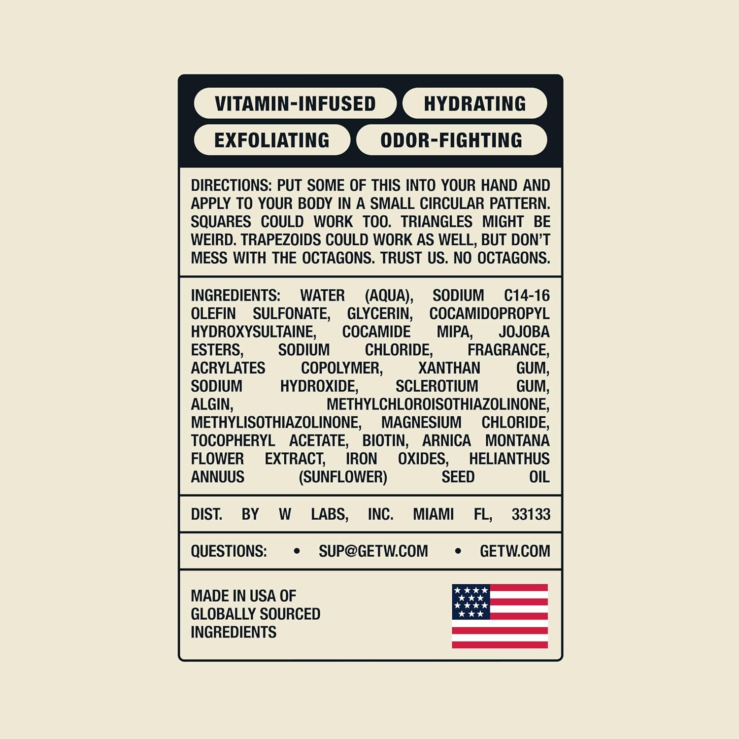 W By Jake Paul Exfoliating Body Wash for Men, Vitamin-Infused, Hydrating Shower Gel, Original, 18 fl oz (Pack of 2)