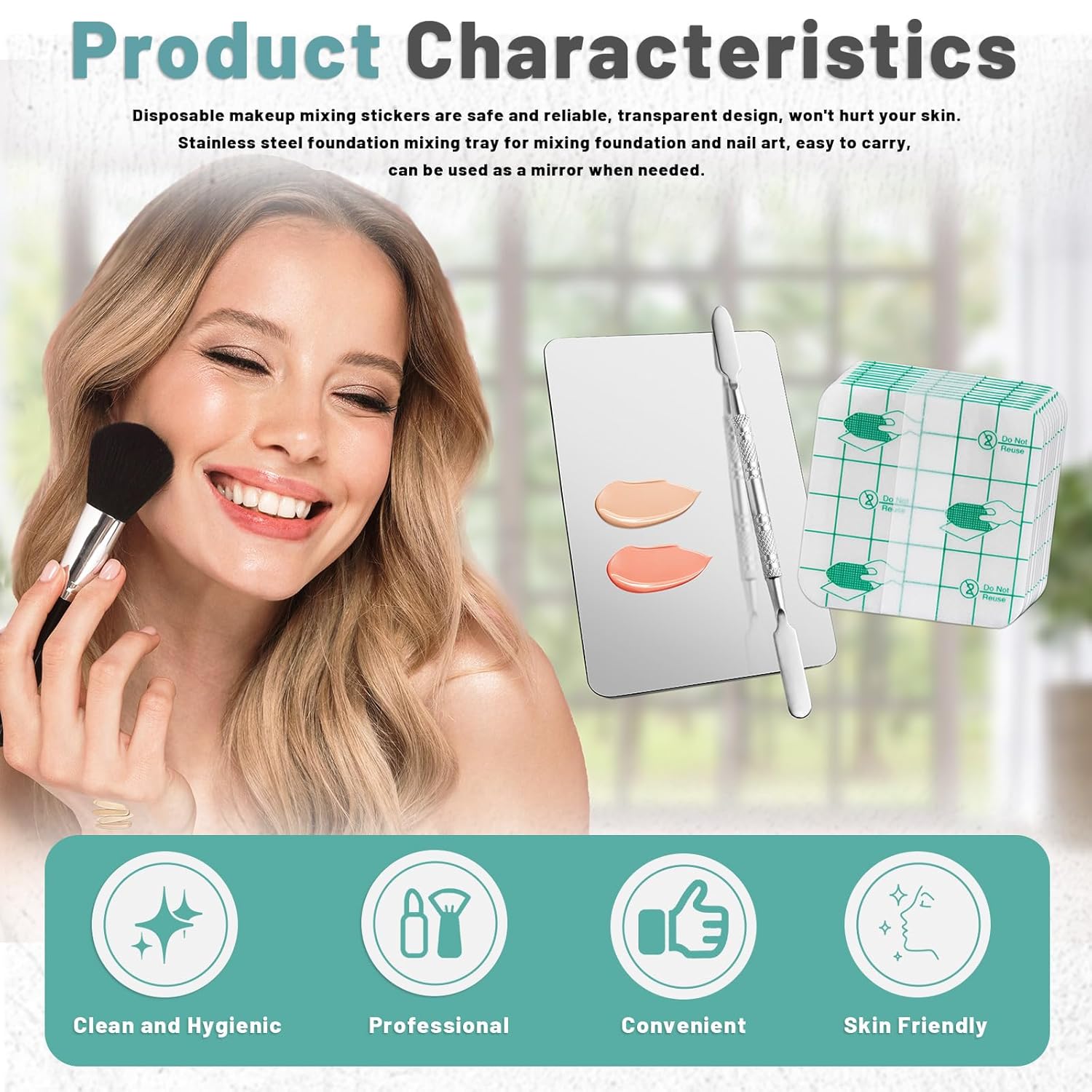 - Package Content: 1 stainless steel makeup palette tray with 1 makeup spatula, and 100 pieces of disposable hand makeup palette tape. Sufficient quantity to meet daily needs. Suitable for makeup artist, makeup enthusiast, nail technician