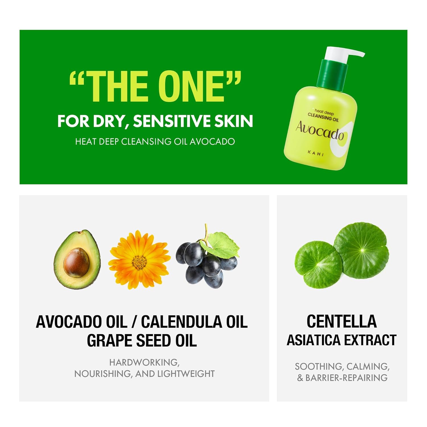 KAHI Heat Deep Cleansing Oil Avocado - Self-Warming Face Oil Cleanser for Blackheads and Waterproof Makeup - Moisturizing Korean Skincare 6.76 fl oz