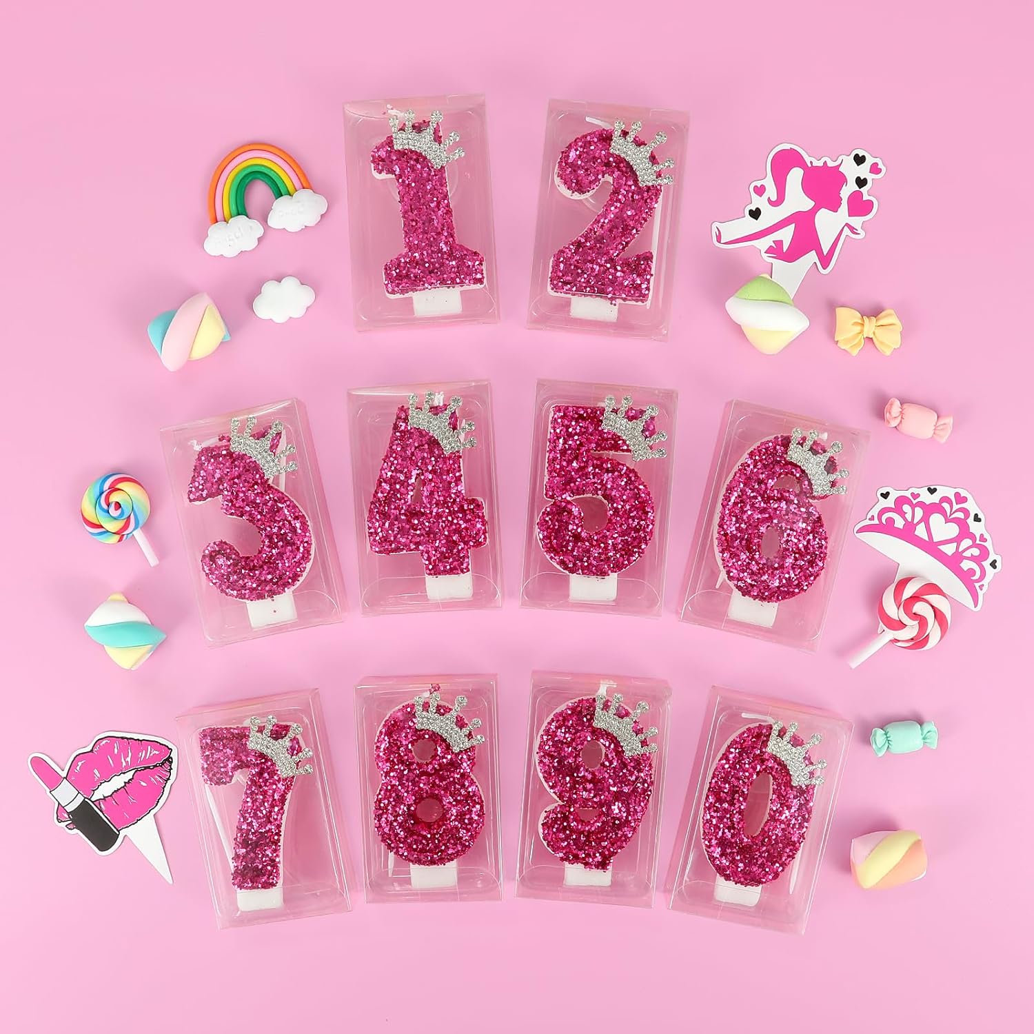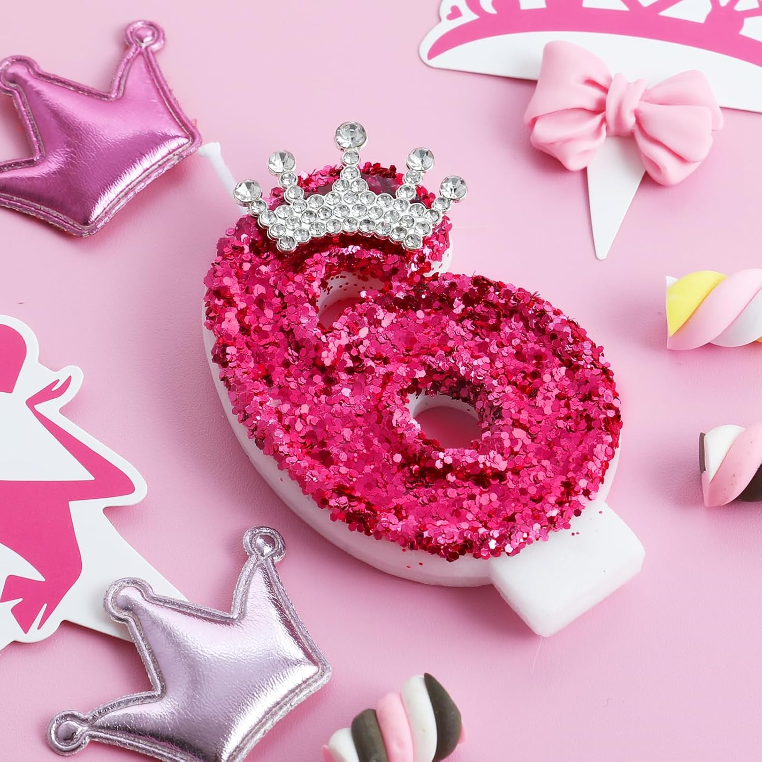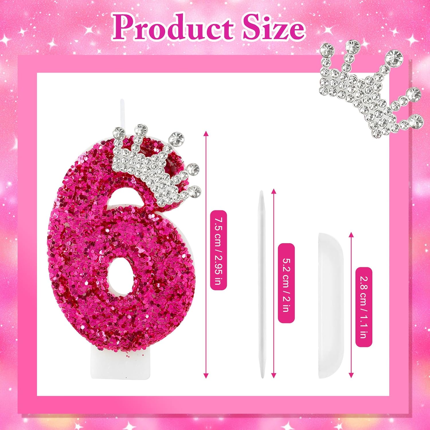 - 【Pretty Appearance】This hot pink number candle is inlaid with sparkling sequins and delicate crown ornaments, beautifully made, make your cake more beautiful.