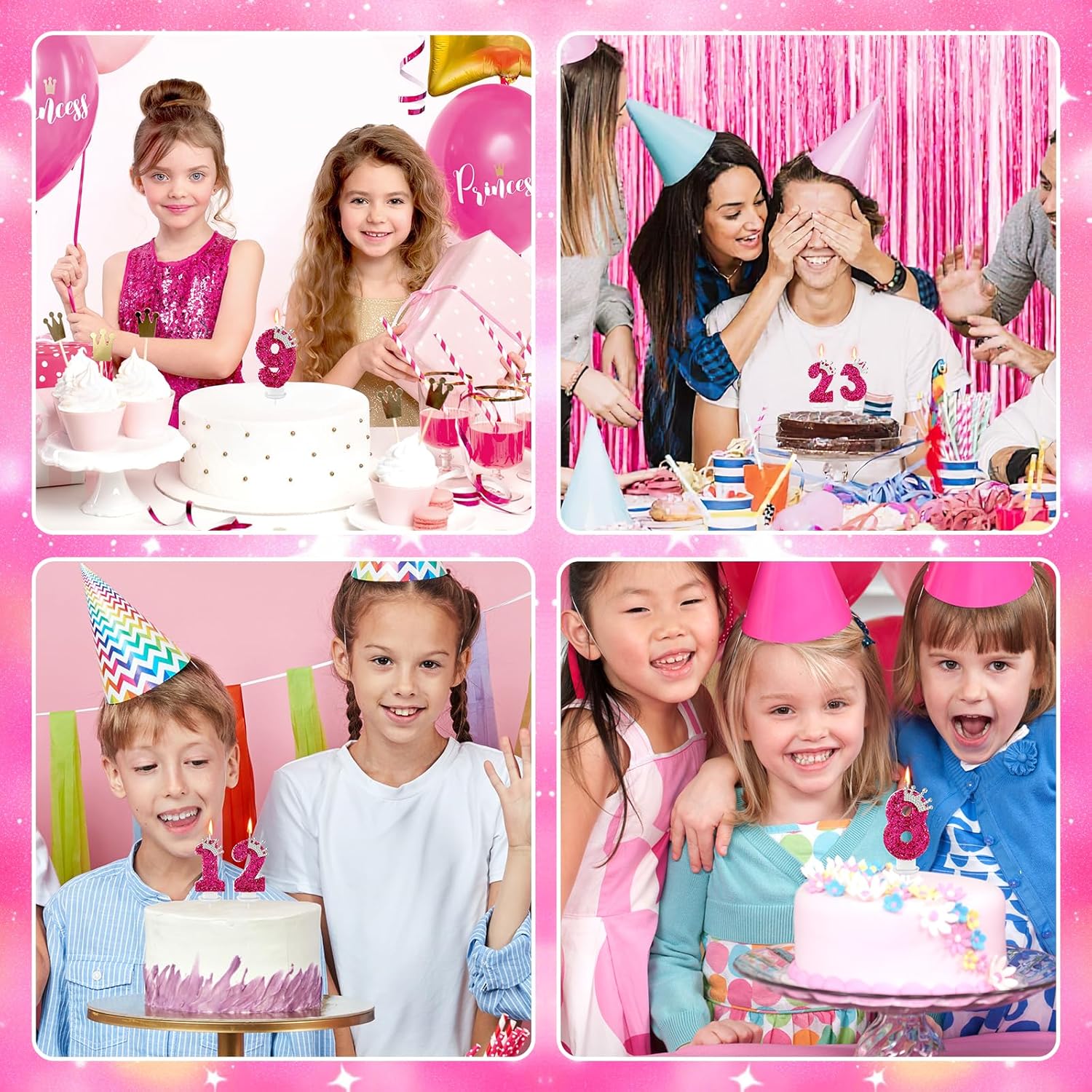 - 【Safe Candles】The hot pink birthday candles are made of high quality wax, Smoke-free, non-toxic, odorless, no dripping wax, safe to use. Each candle contains a candle holder, ensuring your cake is wax-free and pollution-free.
