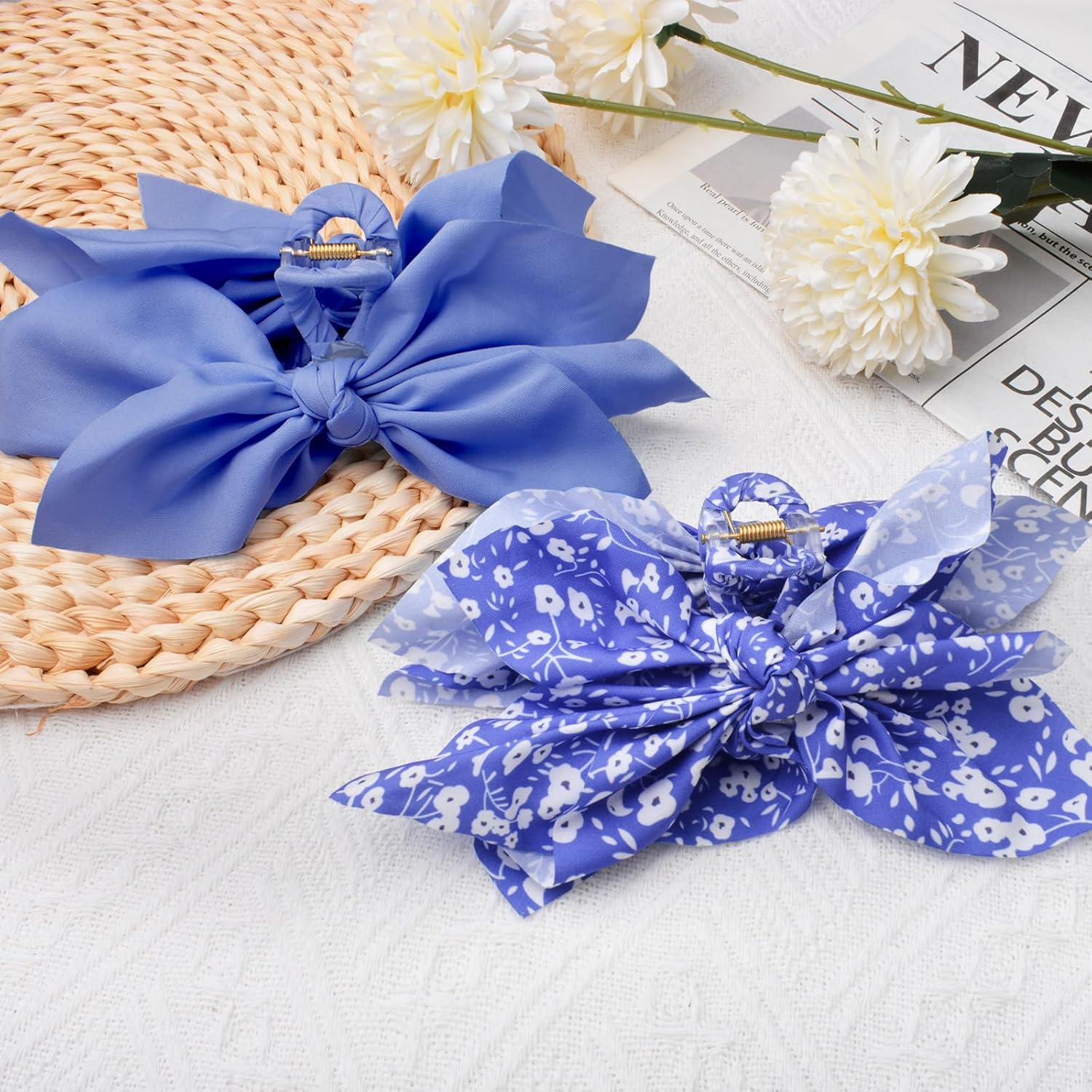 Bow Claw Clips Bow Hair Clips 2PC Blue Big Hair Bows for Women Butterfly Styling Large Hair Clips for Thick Hair for Girls Hair Accessories for Teen