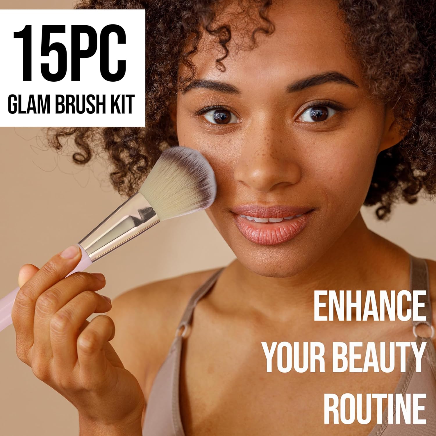 15pc Beauty Set - Beautiful Makeup Brush Collection with Beauty Blenders, Spoolie and Storage Tumbler | Professional Cosmetic Brushes For Seamless Makeup Application