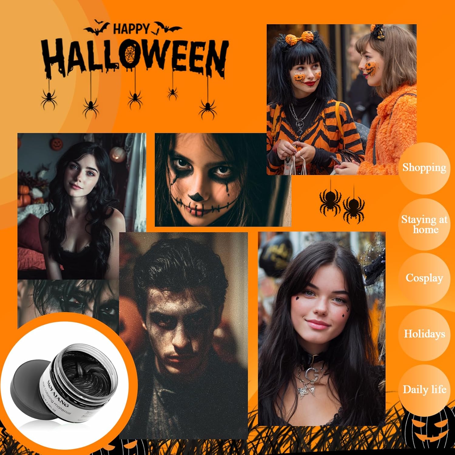 VOLLUCK Temporary Hair Clay Pomades 4.23 oz, Natural Hair Dye Material Disposable Hair Styling Clay Ash for Cosplay. Halloween, Party (Jet Black, 4.23 Ounce (Pack of 1)