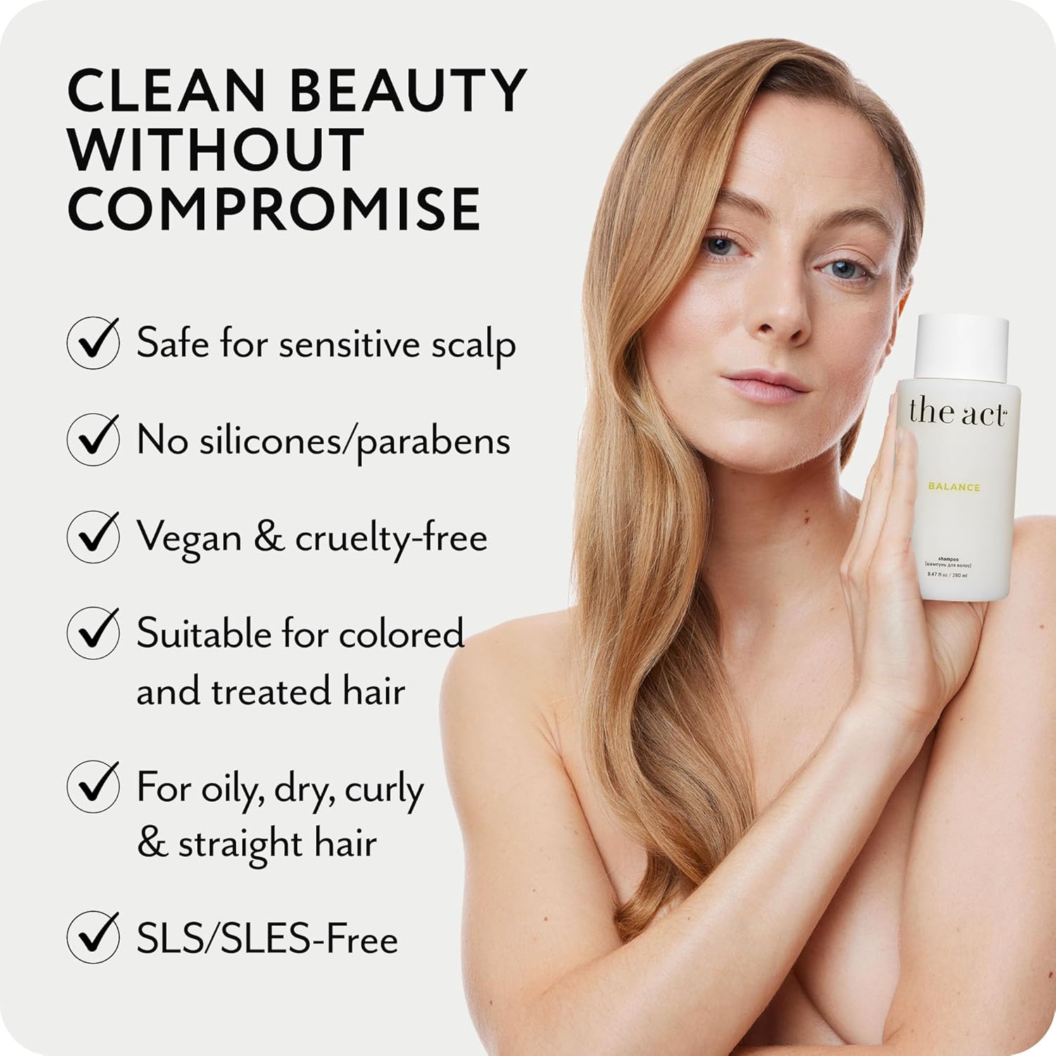 The Act Balance Shampoo for Oily Hair β Anti-Flake & Clarifying Scalp Shampoo β Sulfate-Free, Vegan, Hydrating, pH-Balanced β Moisturizing Clean Beauty β 9.47 Fl Oz