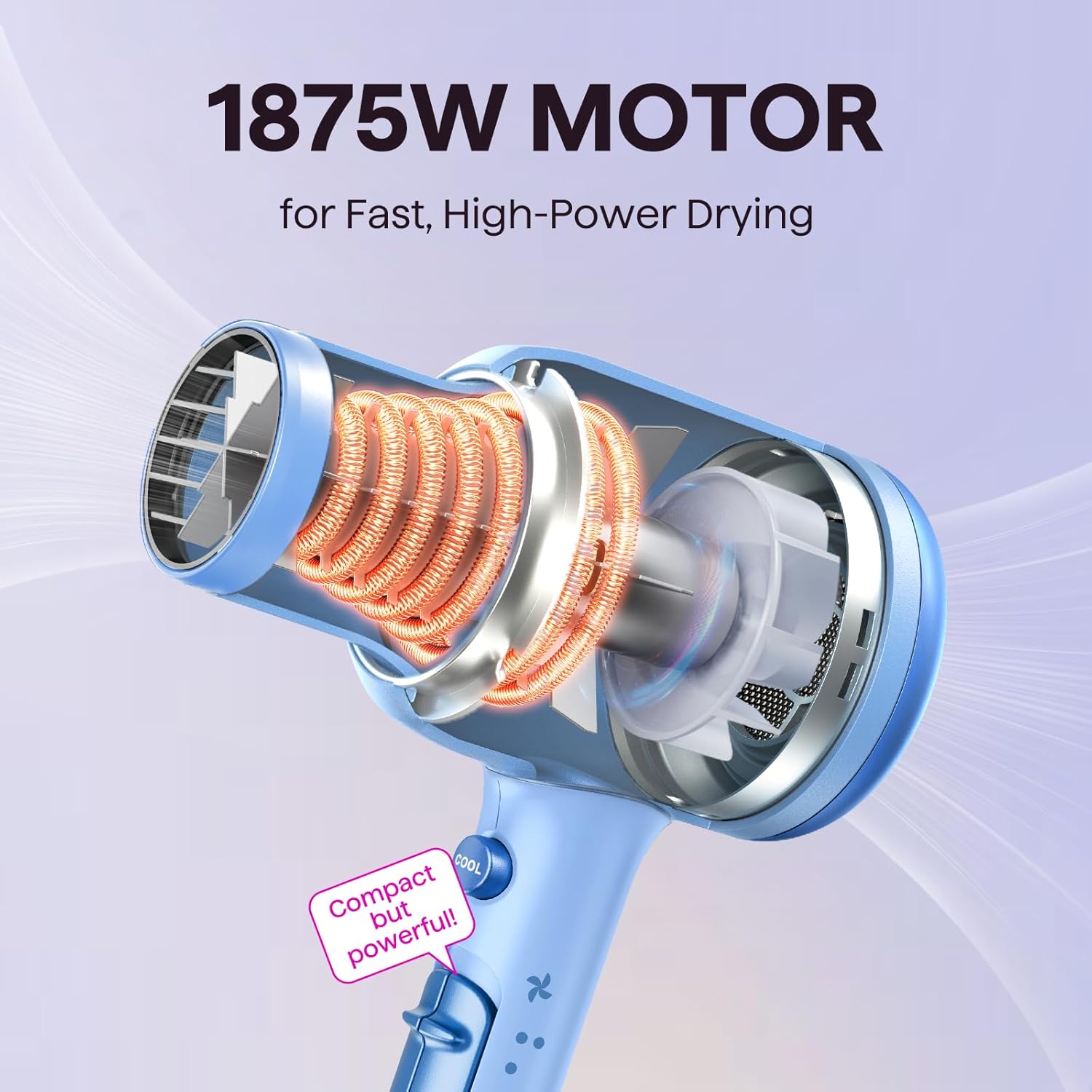 - 2x Faster Drying: Powered by a robust 1875W motor and advanced aerodynamic design, this ionic hair dryer delivers high-speed airflow to dry your hair twice as fast. Spend less time drying, avoid overheating, and minimize damage—all while achieving effortlessly sleek results.