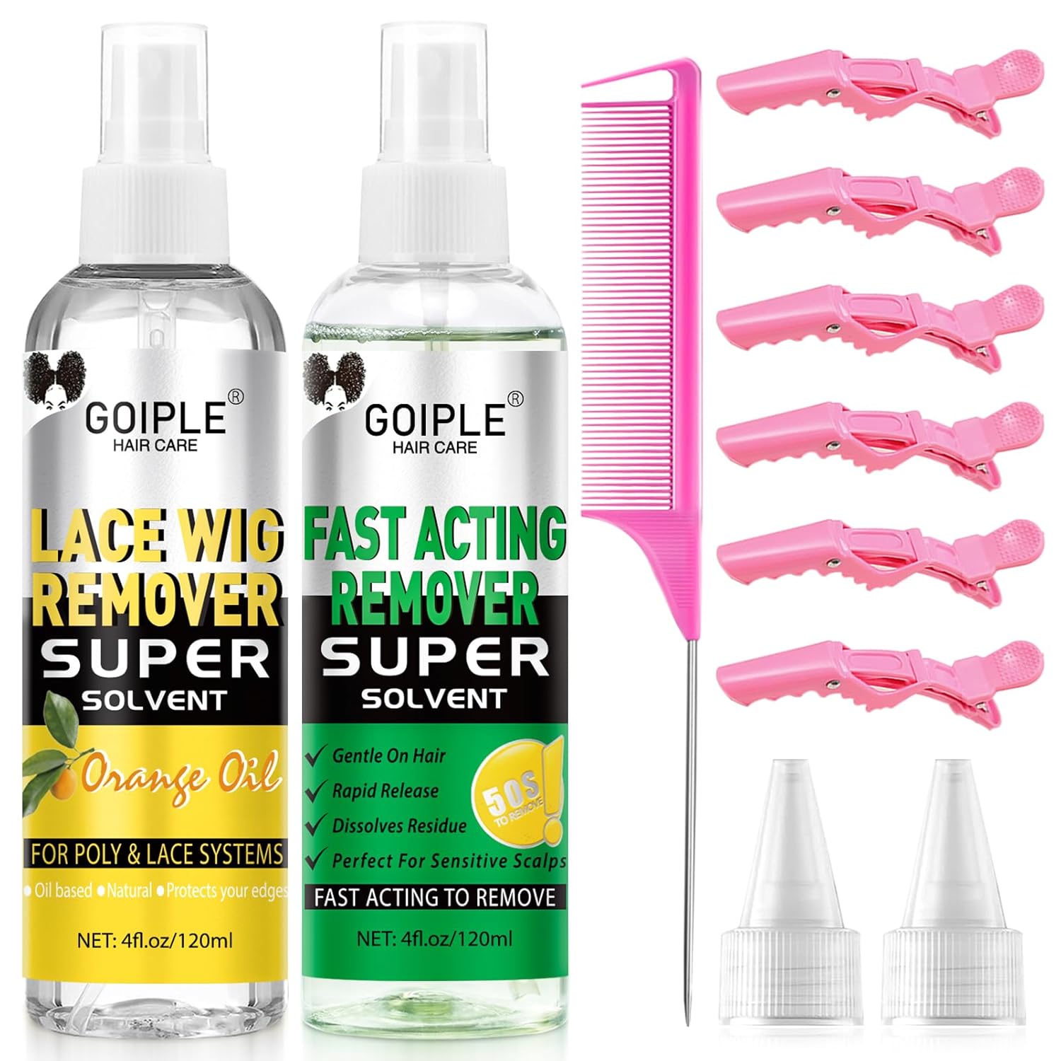 - Dual-Mode Hair Glue Remover System: First spray breaks down bonds, then the second application erases residue. This hair extension remover leaves no sticky traces on skin or hair, maintaining your natural hairline health