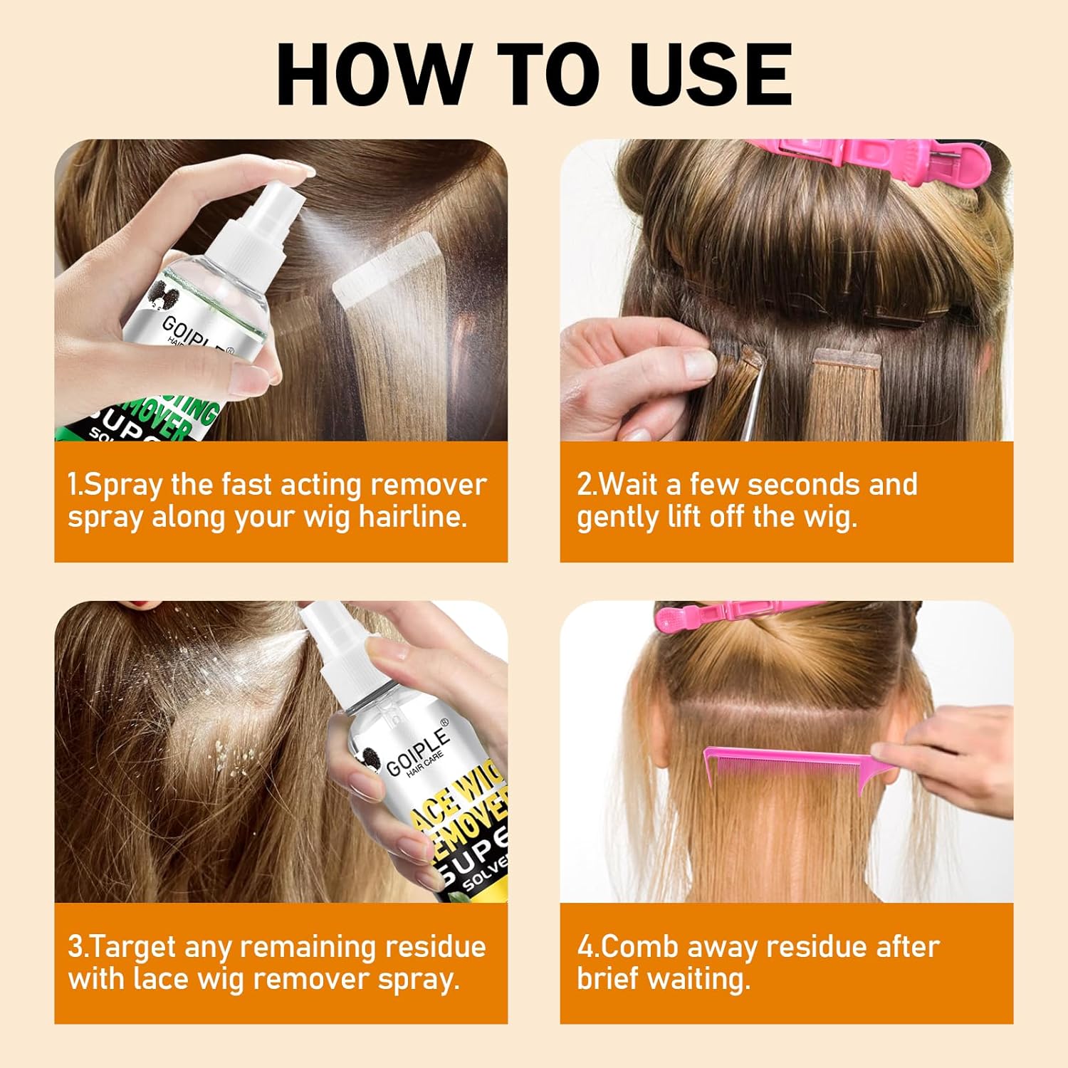 - Tape in Extension Remover with Faster Action: Our fast-acting wig glue remover spray gently dissolves adhesives in under a minute. The precision mist targets tape in remover needs for lace fronts, clips, or bonded extensions