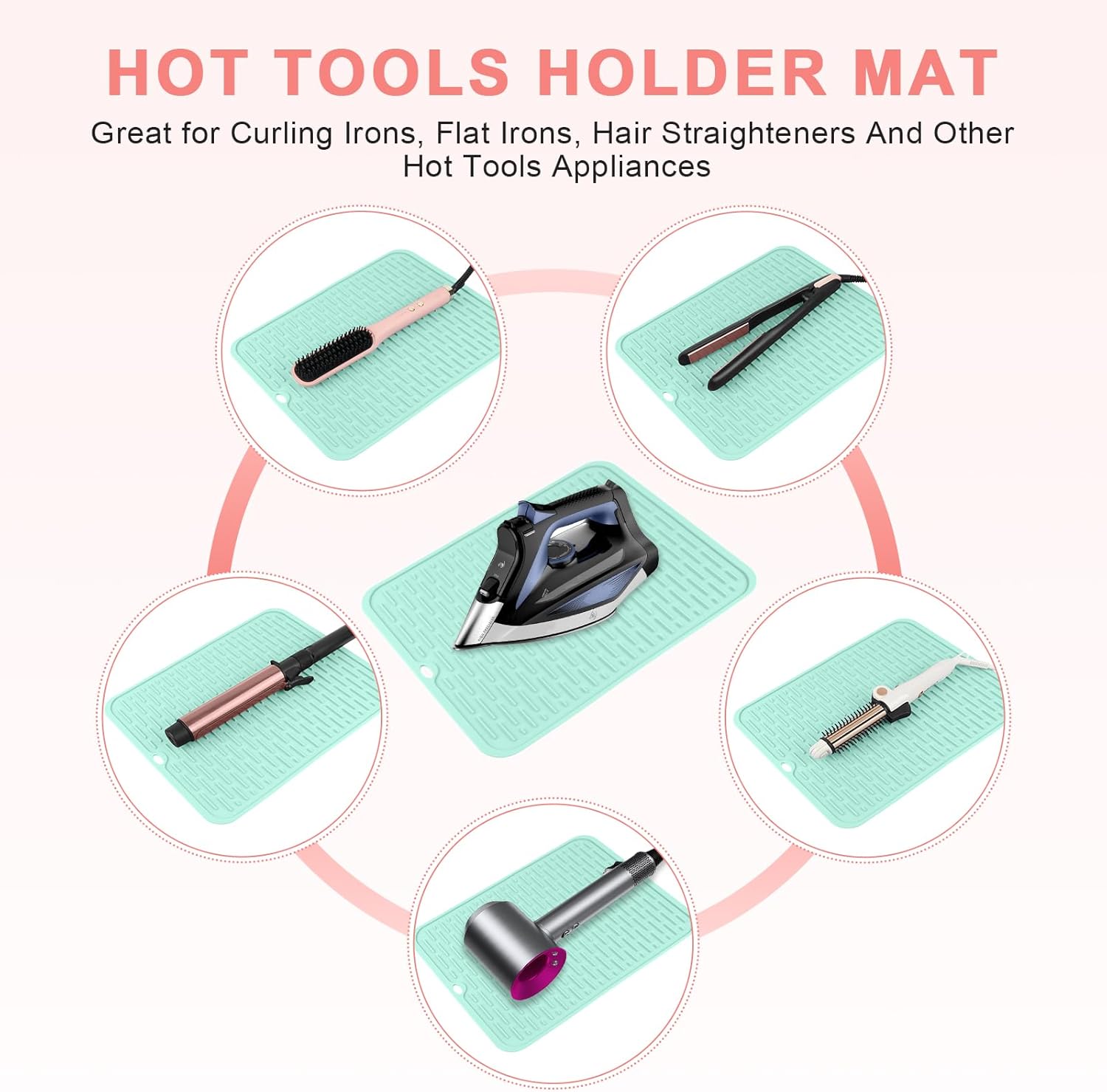 - Heat-Resistant Material: Our silicone mat for hair tools is made of heat-resistant silicone, which withstands temperatures up to 482℉(250℃), providing a reliable barrier to protect your countertops and vanity from the intense heat of curling irons, flat irons, hair straighteners and hot hair styling tools