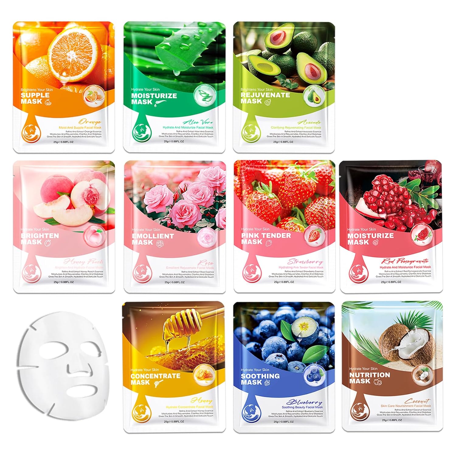 10PCS Hydrating Facial Sheet Mask,Moisturizing Face Masks Skincare Gift Set,Long Lasting Face Mask Skin Care & Facial Mask Kit for All Skin Types 16