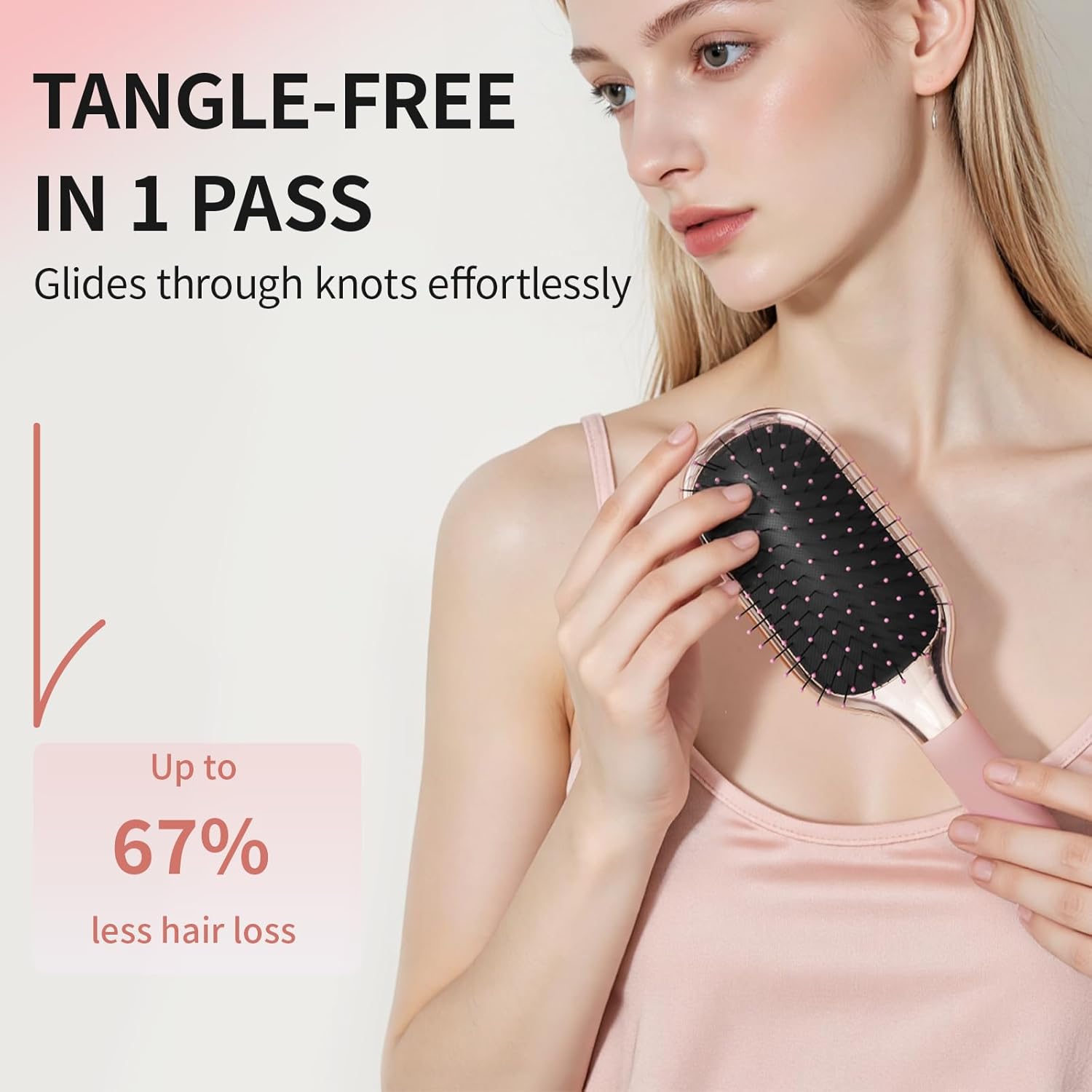 - Soft Yet Durable: Crafted with medical-grade nylon, these self-rebounding bristles maintain their shape through years of use. The ergonomic handle glides smoothly to minimize tension, making it a daily haircare essential for all genders.