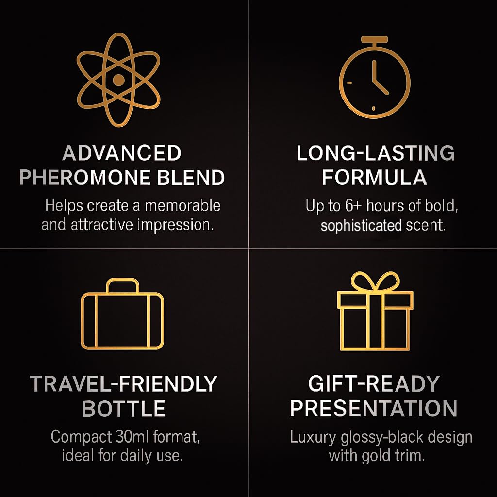 - Long-lasting fruity-floral eau de parfum with pheromones; evolves uniquely on skin; suitable for daily wear, formal occasions, or special nights; cruelty-free and safe for all skin types