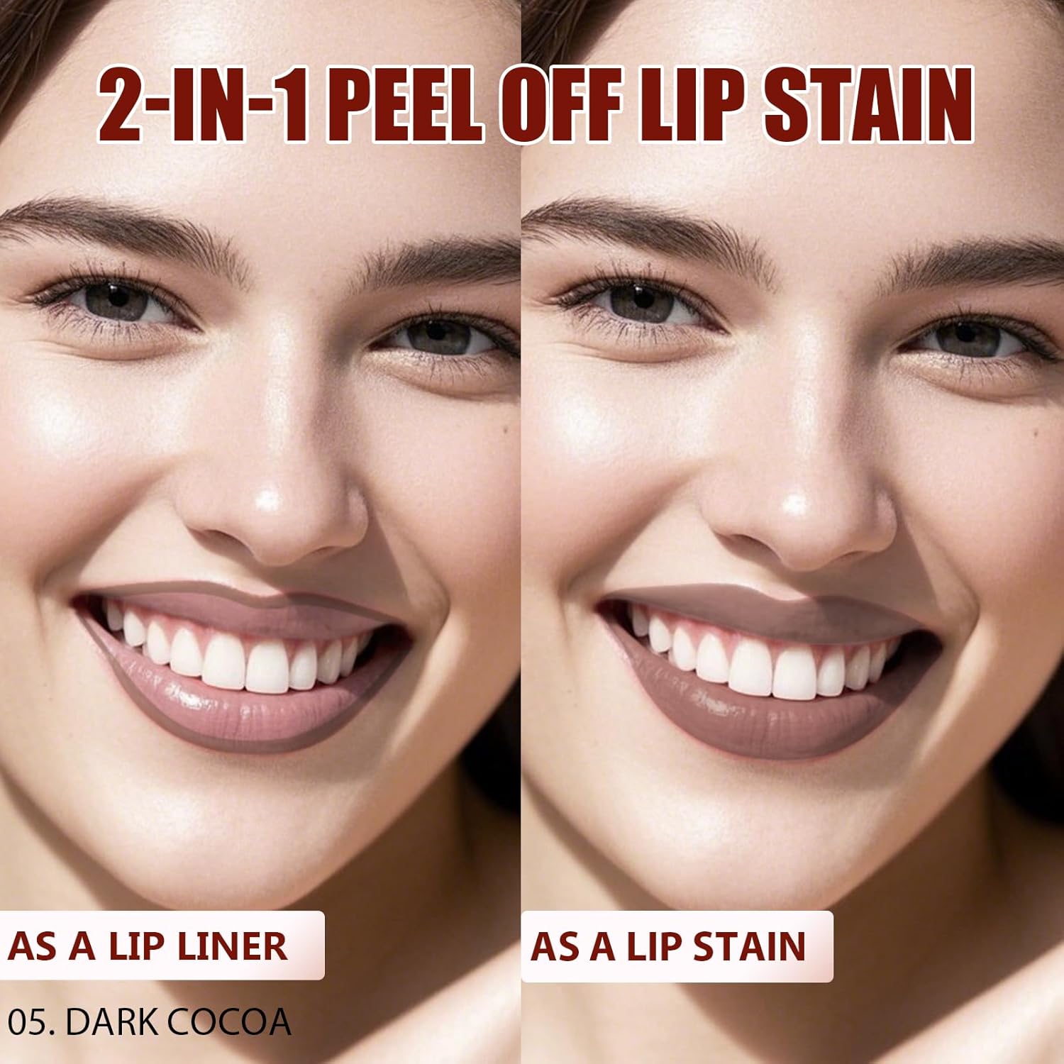 Lip Liner Stain Peel Off with Tweezer, Long Lasting Matte Lip Tattoo, Highly Pigmented Color Lip Makeup, Waterproof, Transfer-proof Lipstain for Women, for All Skin Types 05