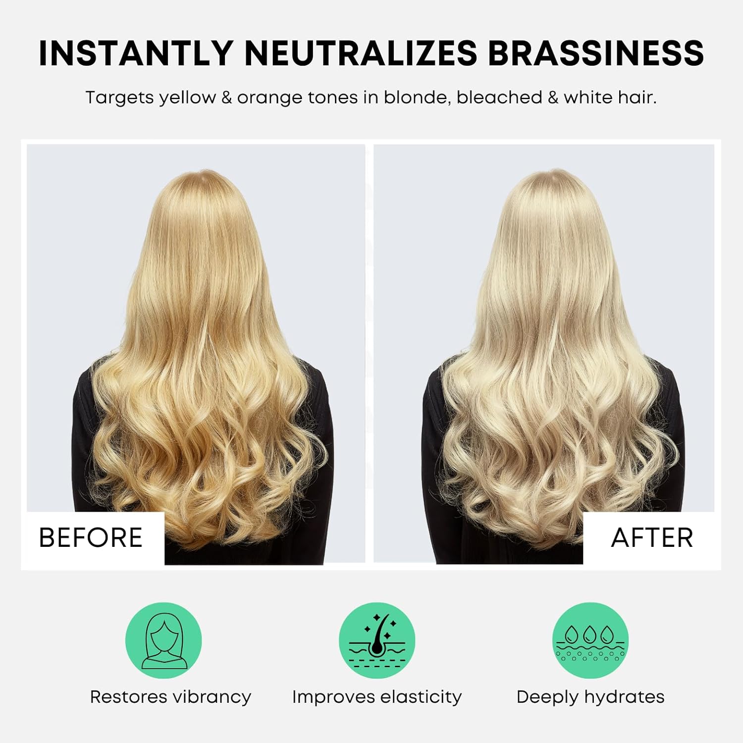 - Neutralizes Brassiness Fast – Blue-pigmented formula cancels yellow and orange undertones in bleached, lightened, platinum, or natural blonde hair.