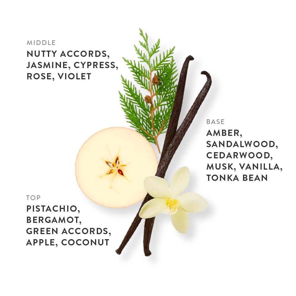 - SINGLE COLLECTION NOTES: A nutty Gourmand Floral with layers of pistachio, coconut, amber, and violet