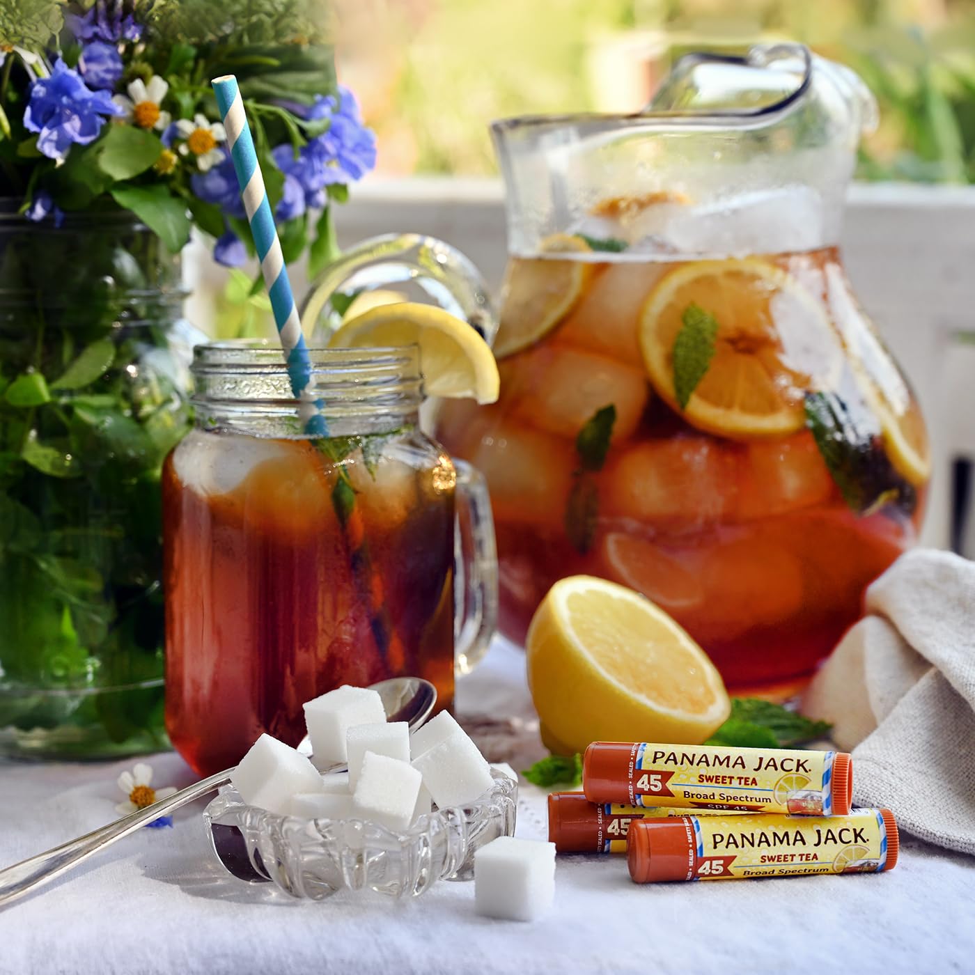 Panama Jack Sunscreen Lip Balm - SPF 45, Broad Spectrum UVA-UVB Sunscreen Protection, Prevents & Soothes Dry, Chapped Lips, Sweet Tea, 3-pack