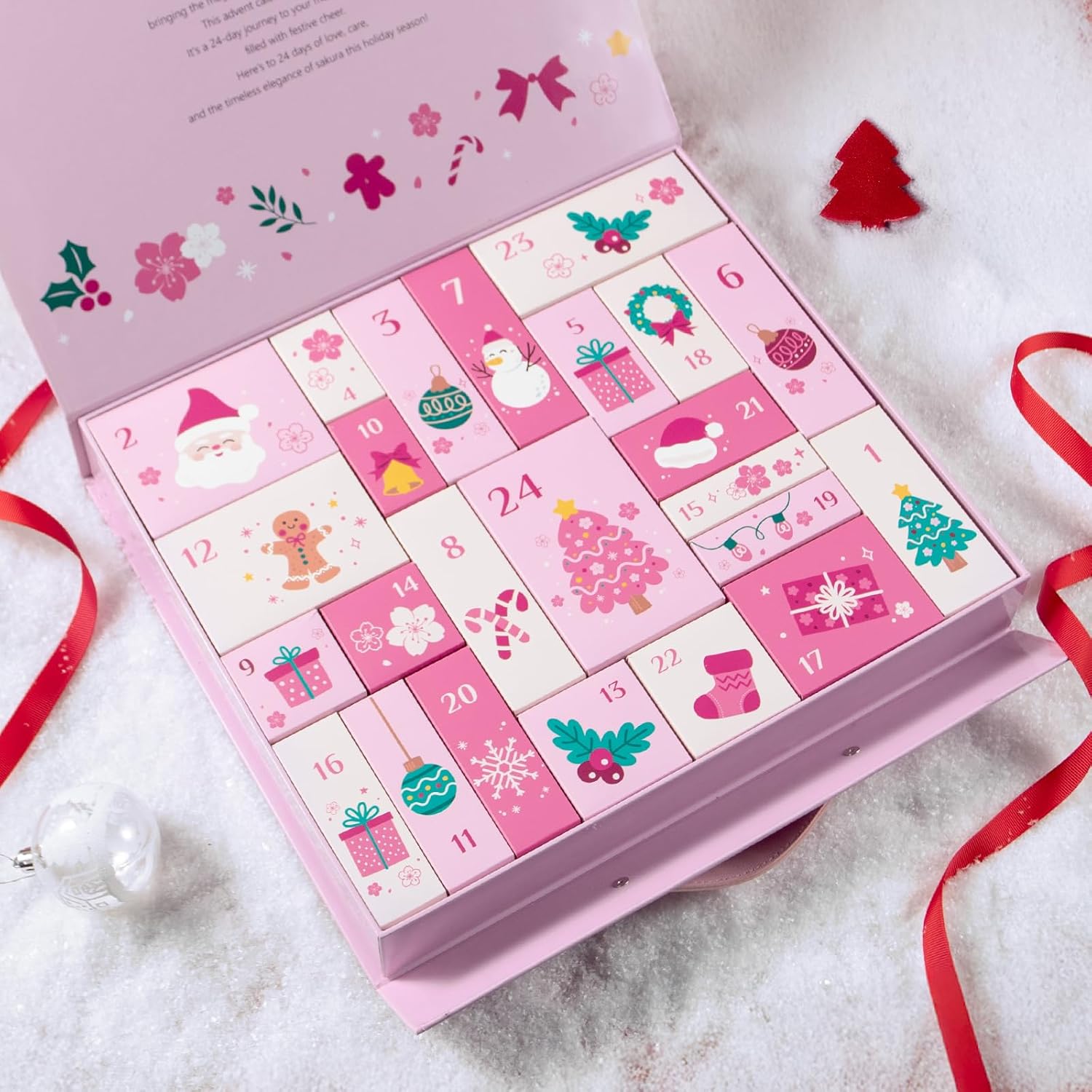 LAIKOU Japan Sakura Beauty Advent Calendar 2025, Christmas Gifts for Women, Skin Care Set, Bath Body Gift Set, New Year Skincare Beauty Gift Baskets, 24pcs Surprise Gift Box for Women and Girls