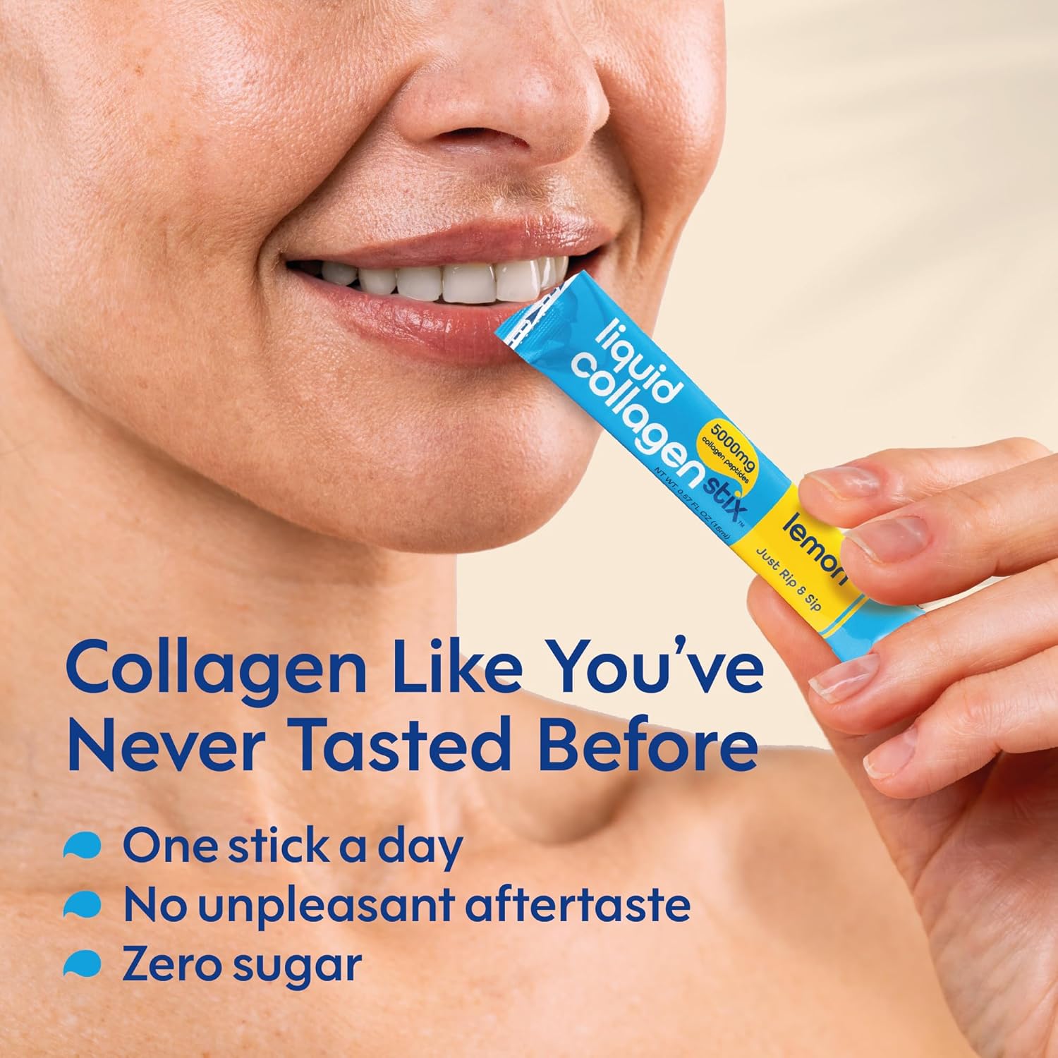 Hydrolyzed Liquid Collagen Peptides for Women & Men - Grass-Fed Bovine Protein Supplement for Hair Growth, Skin and Nails (Pack of 14, Lemon)
