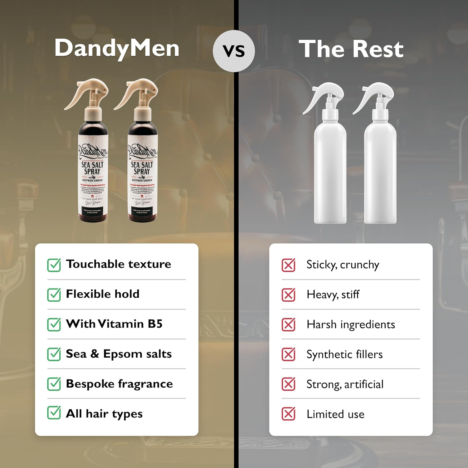 - NATURAL TEXTURE AND VOLUME: Get effortless, tousled texture and boosted volume with DandyMen Sea Salt Spray, perfect for creating that beachy, full-bodied look.