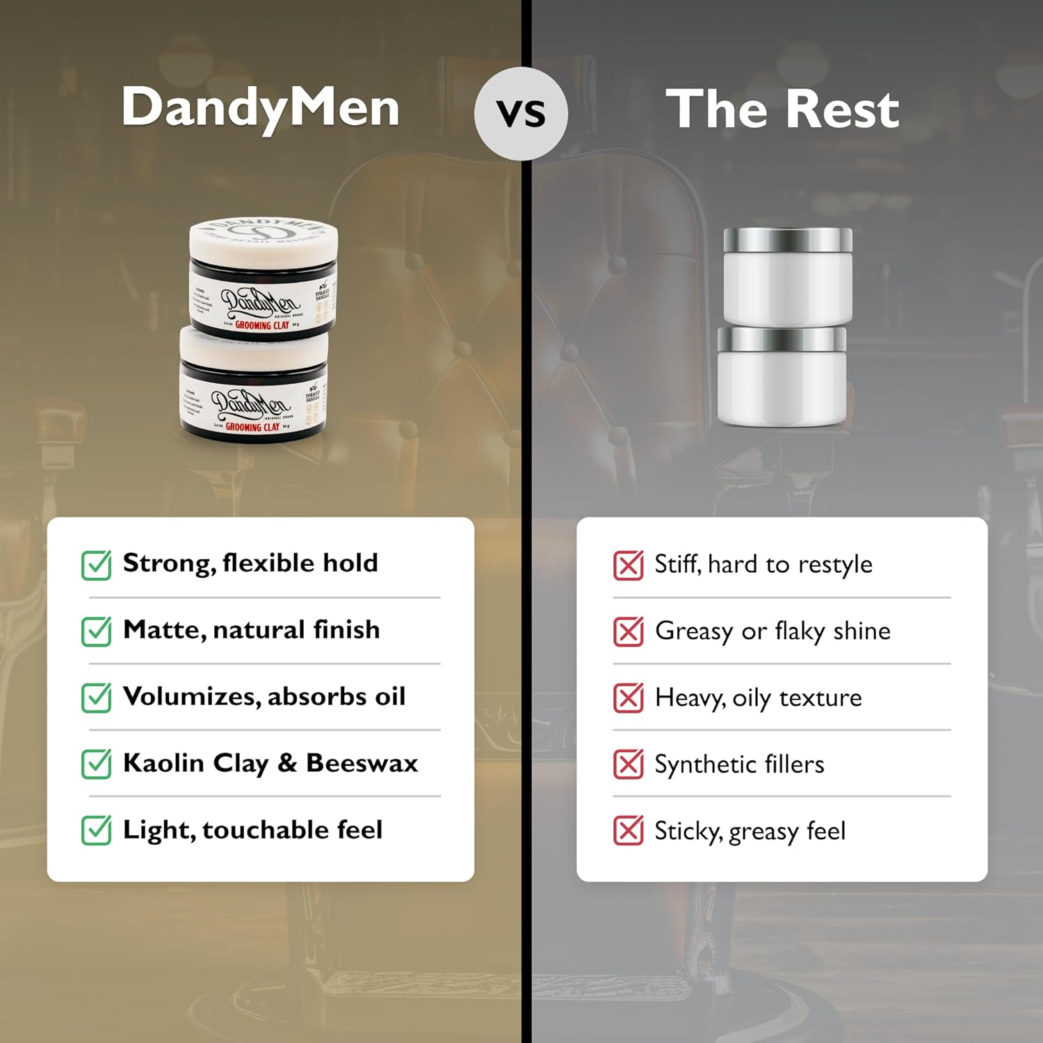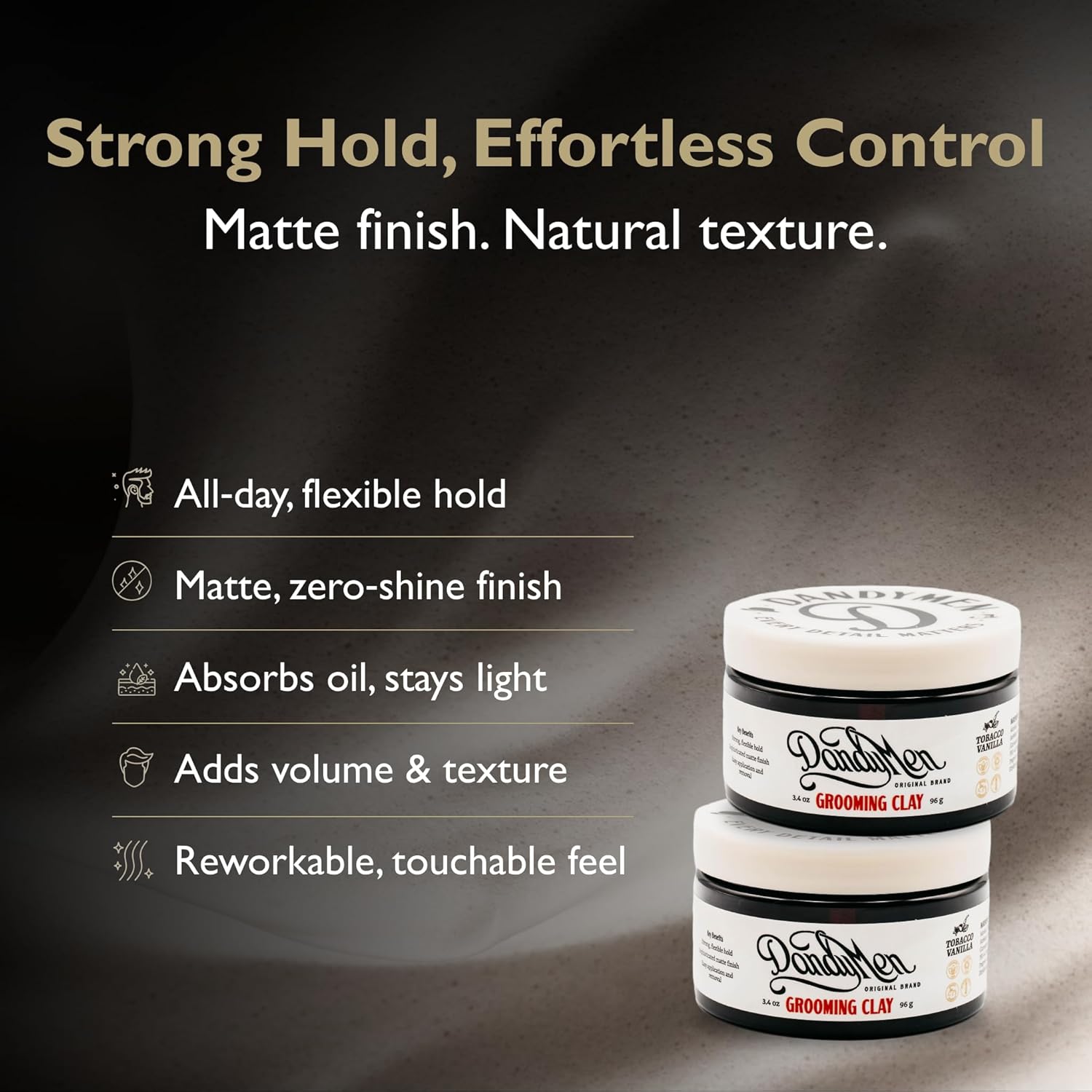 - STRONG, FLEXIBLE HOLD - Create sharp styles or relaxed, textured looks. DandyMen Grooming Clay keeps your hair in place with natural movement that lasts all day.