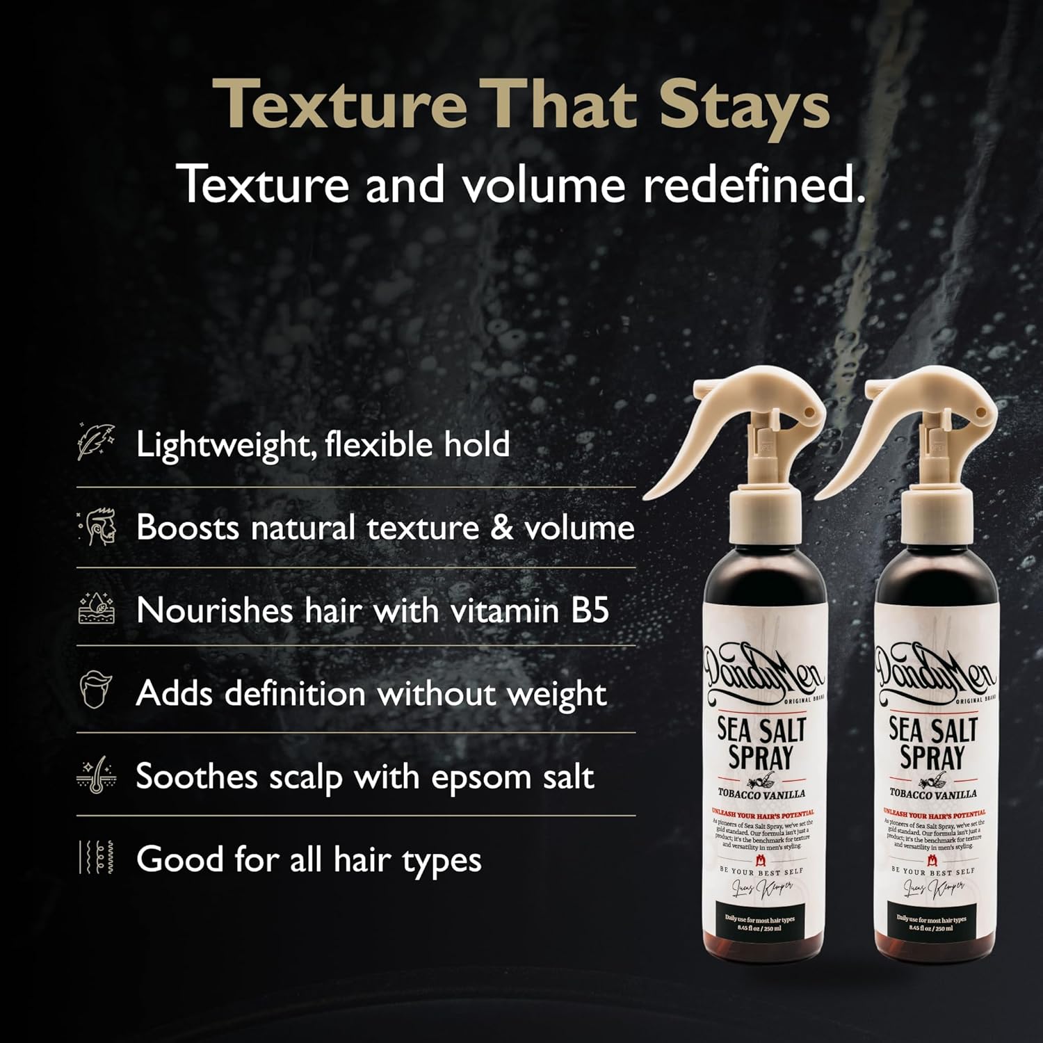 - NATURAL TEXTURE AND VOLUME: Get effortless, tousled texture and boosted volume with DandyMen Sea Salt Spray, perfect for creating that beachy, full-bodied look.
