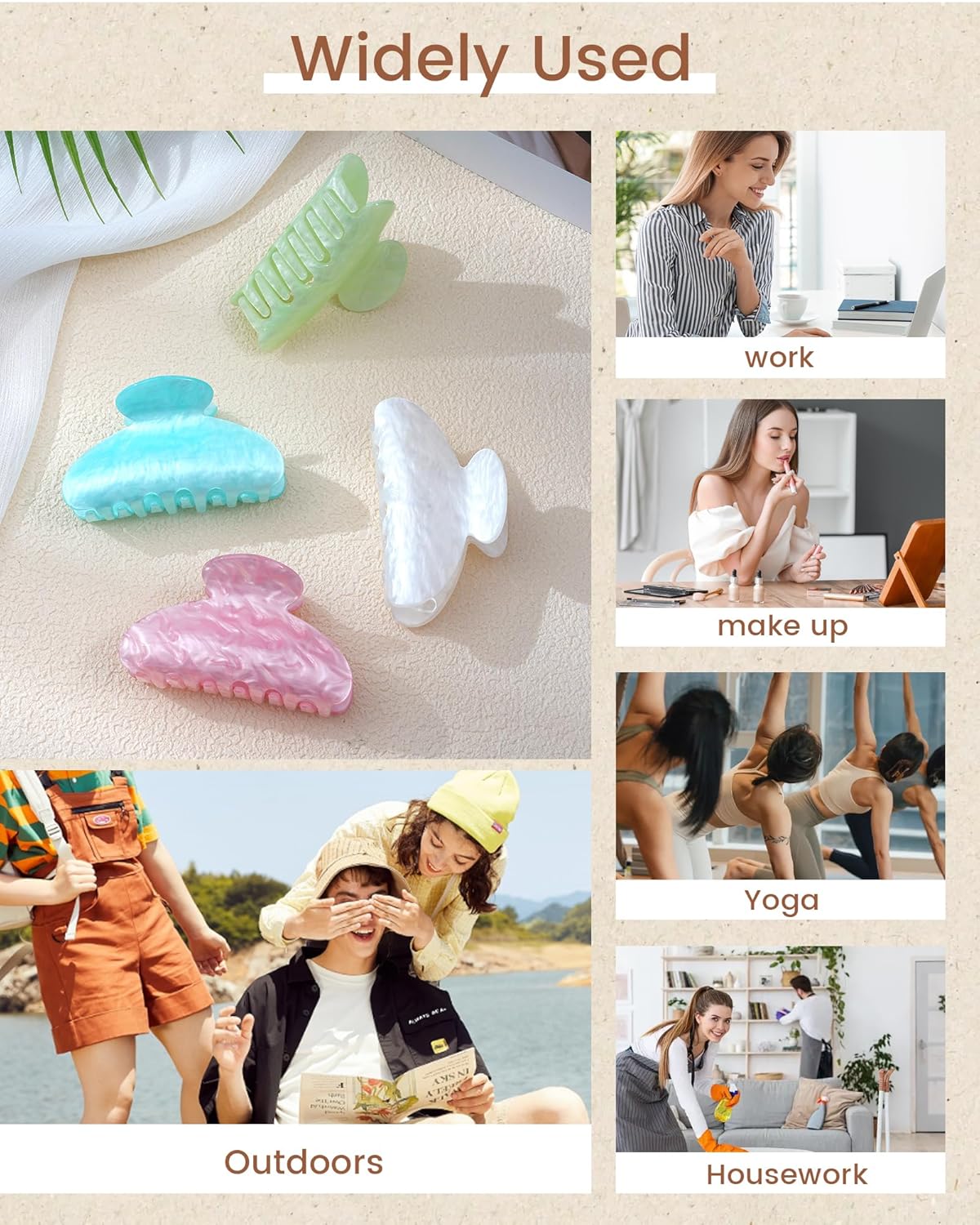 - For Widely Used: Suitable for work, travel, workouts, cooking, salon styling or outdoor activities. Create elegant updos or playful messy buns for dates, photoshoots, or daily errands. Keeps hair tidy during cooking/cleaning while preventing flyaways