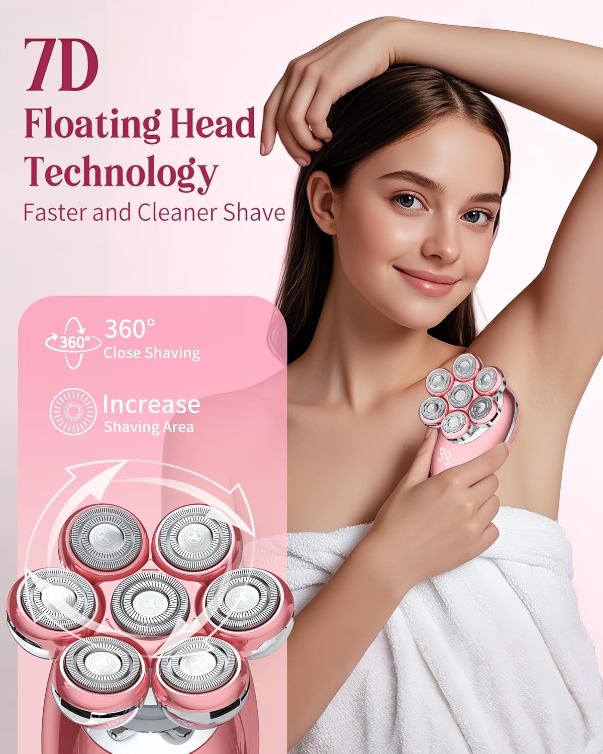 - SMOOTH, GENTLE SHAVE WITH DOUBLE-RING BLADES: The upgraded dual-layer blade system of this electric shaver for women is wider and thinner to capture more hair per pass for a faster, cleaner result. A 360° contour-following head with six independent floating foils hugs curves on legs, underarms, arms, and the bikini line, maintaining close contact to reduce missed spots. Designed for sensitive skin, it removes hair quickly while minimizing pulling, nicks, and irritation for a comfortable finish.
