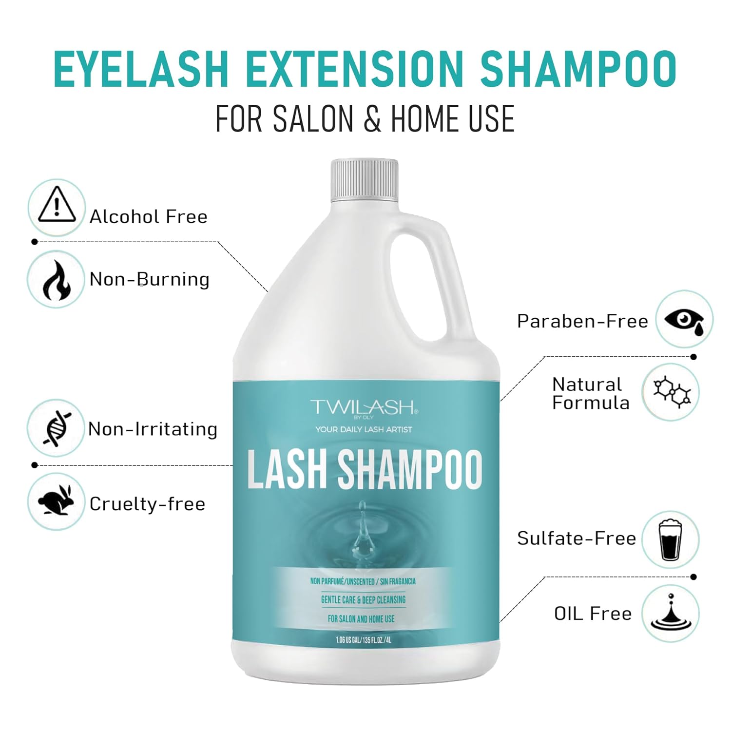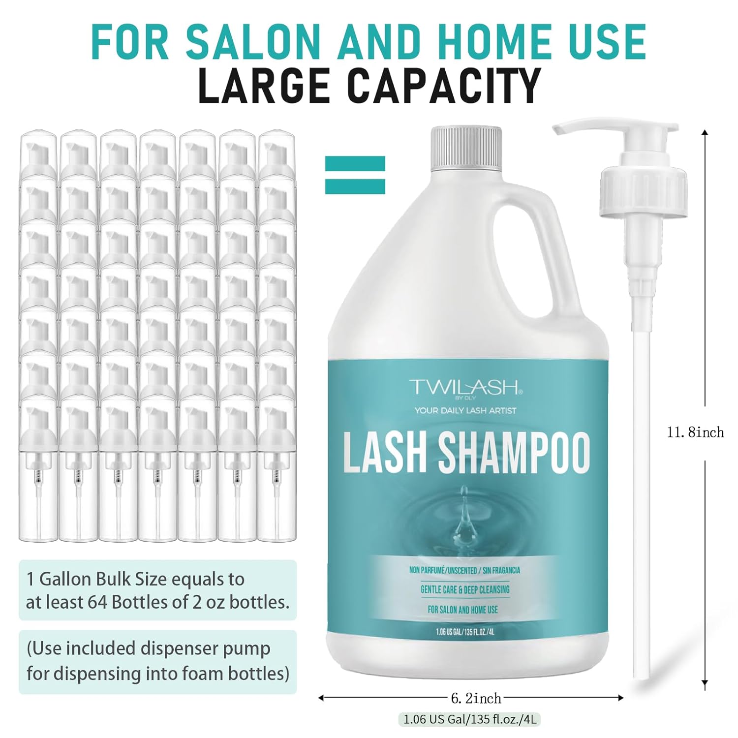 - What You Get - 4 liter size lash shampoo for lash extensions which can make at least 34 bottles of 2 oz lash shampoo, 1 pump head for dispensing.