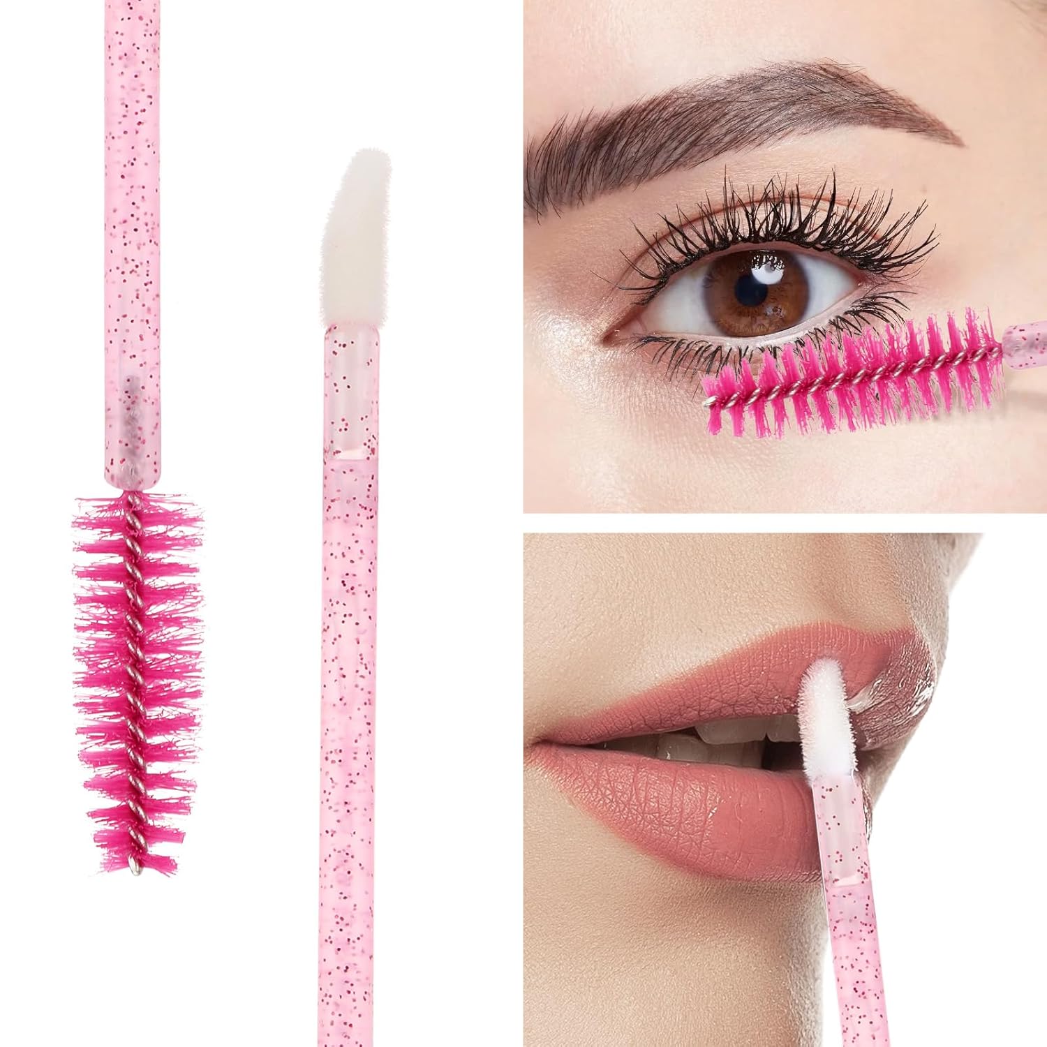 - The makeup brush is composed of a crystal plastic handle, a soft cotton Lip brush head and a premium nylon lash brush head, which is not easy to break and fall off