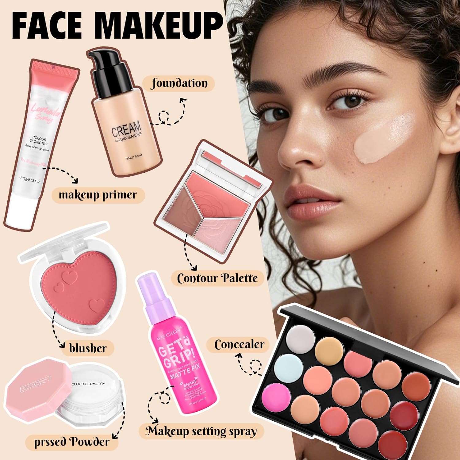 - 【Best Gift For Her】Designed for both beginners and professionals, this complete makeup kit has everything needed to create endless looks-from natural everyday wear to glamorous party styles. With its wide range of colors and premium tools, it inspires creativity for any occasion. Beautifully packaged, it’s the perfect present for birthdays, holidays, and special moments, ready to delight her-whether she’s a teen, mom, friend, or anyone who loves makeup.