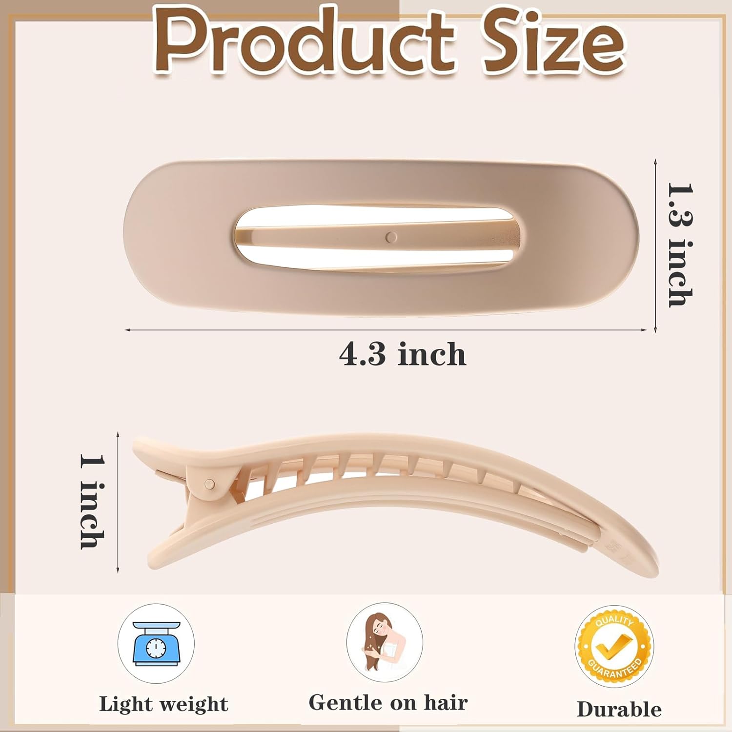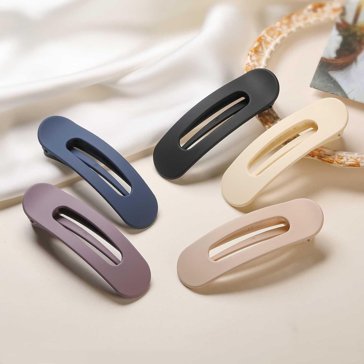 - Size&Colors-These no crease flat hair clips size is 4.3*1.3 inches, it's lightweight and easier to carry than the traditional claw clip,each claw clips set comes in 5 neutral matte colors and you can choose different colors to match different outfits, the matte hair clips also fits perfectly with your purse bag clutch