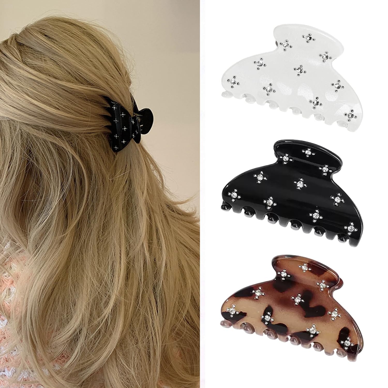 - 3-Pack Essential Colors: This set includes a classic black, a Tortoise , and a white clip, giving you versatile options to match any outfit or mood.