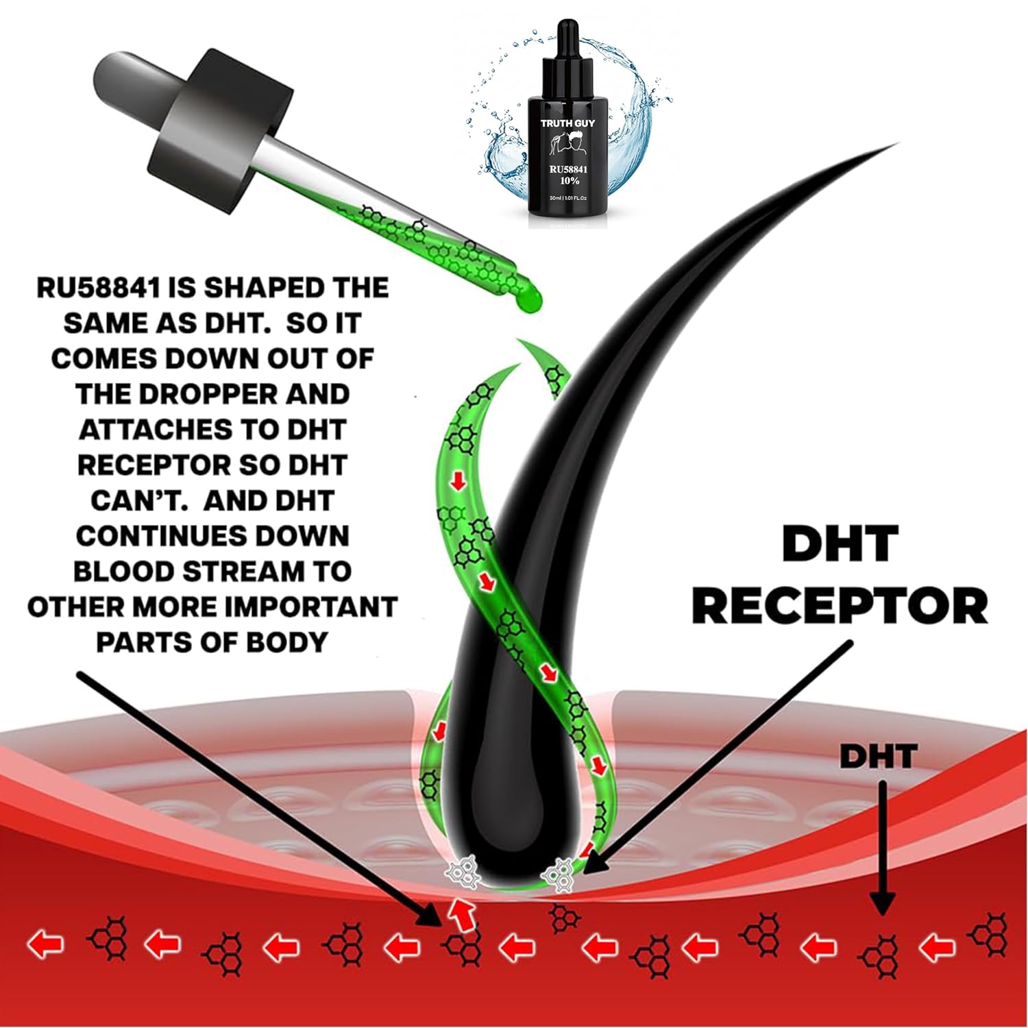 - Highest Potency RU58841 10%: This hair loss solution features the highest available concentration of RU58841 on the market. Its powerful DHT-blocking formula targets hair loss at the root, promoting healthier, thicker hair for both men and women.