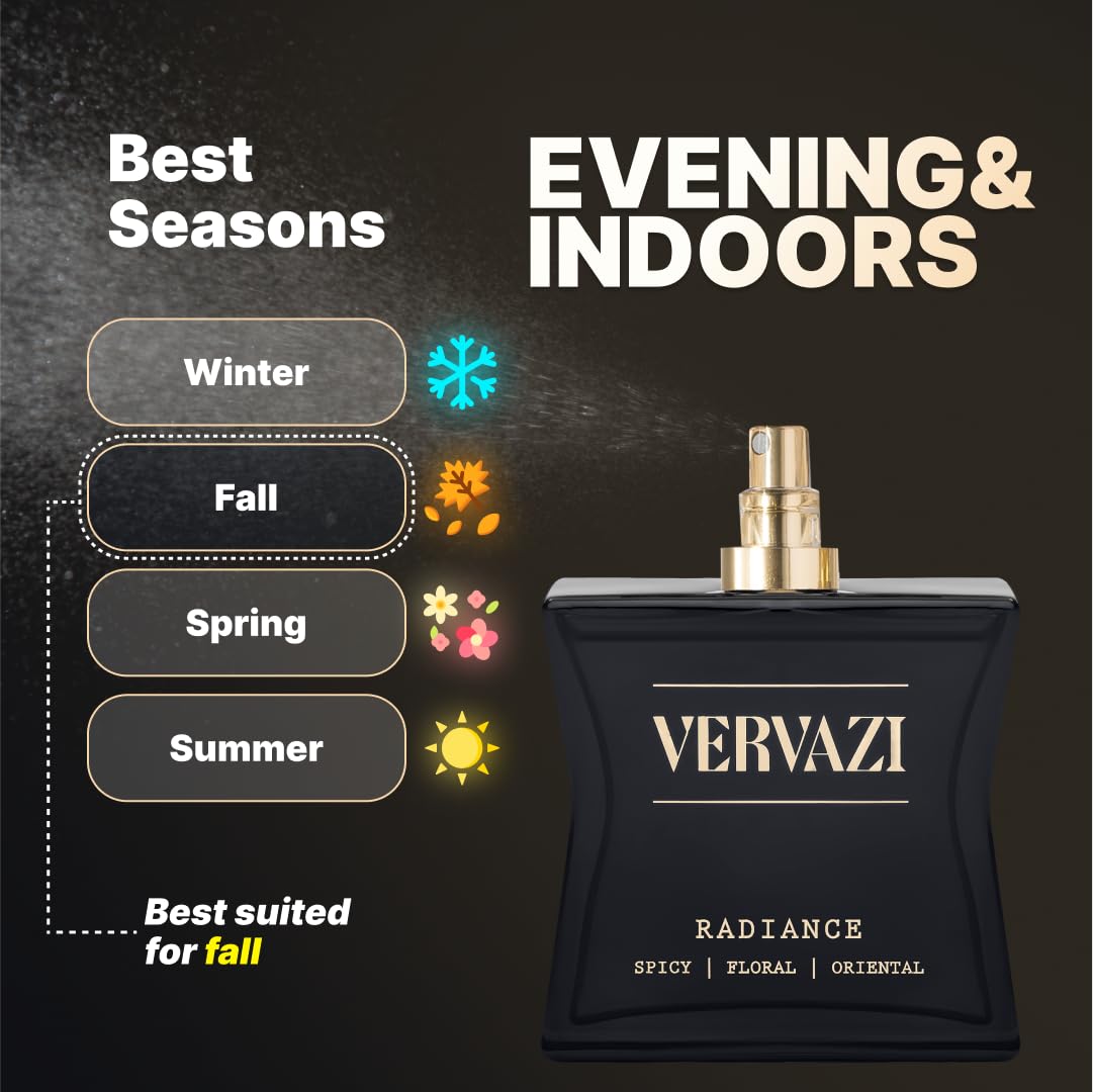 Radiance 50 ml Unisex Eau De Parfum, Spicy, Floral, Oriental Unisex Scent, 22% Concentration, 8+ Hours Lasting Perfume for Women & Men, Day & Night Wear, Includes Truth Perfume Tester