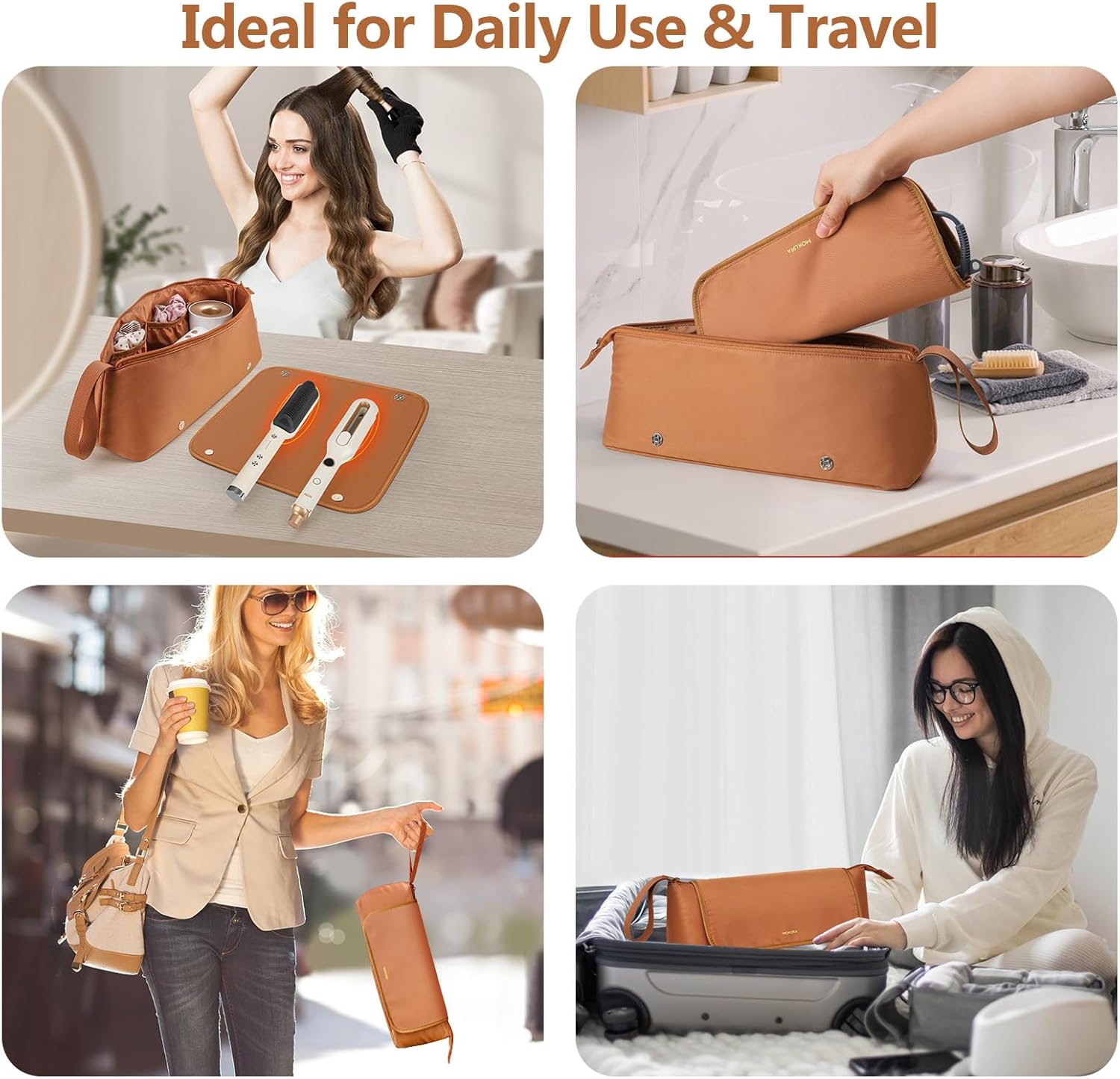 MOKURA Hot Hair Tools Travel Bag with Heat Resistant Mat Removable, Hair Accessories Organizer Case, Women Travel Essentials, Storage Pouch for Curling Iron Straightener Flat Iron Hair Dryer, Brown