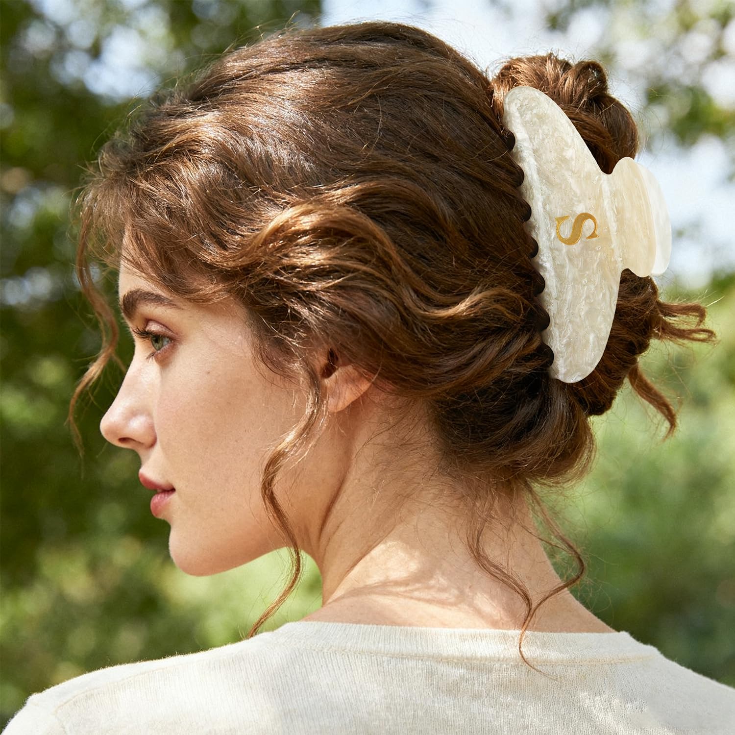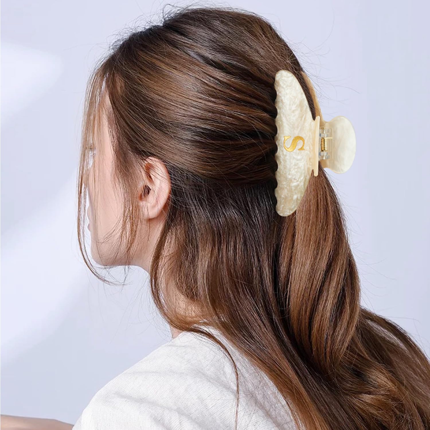 MAORULU 4 Inch Letter S Acrylic Hair Claw Clip for Women, Large Cute Marble Beige Glitter Alphabet Jaw Clips for Thick or Thin Hair, French Style Strong Hold Monogram Hair Accessories